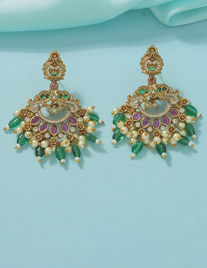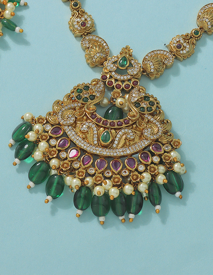 Designer Radiant Emerald Matt Kempu Necklace Set