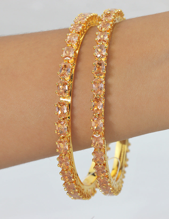 Delicately crafted gold-toned bangles with embedded clear stones—radiating subtle sparkle and timeless elegance for every occasion.