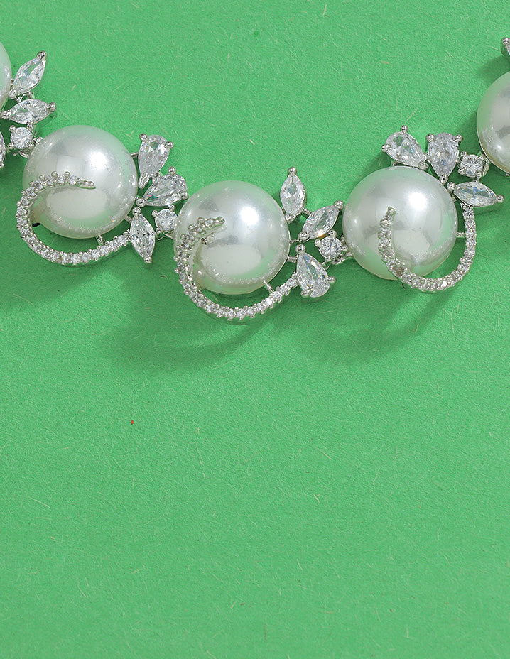 Designer Zirconia Pearl Necklace Set