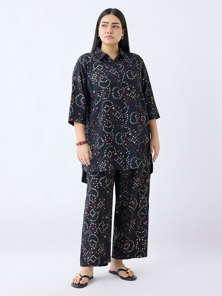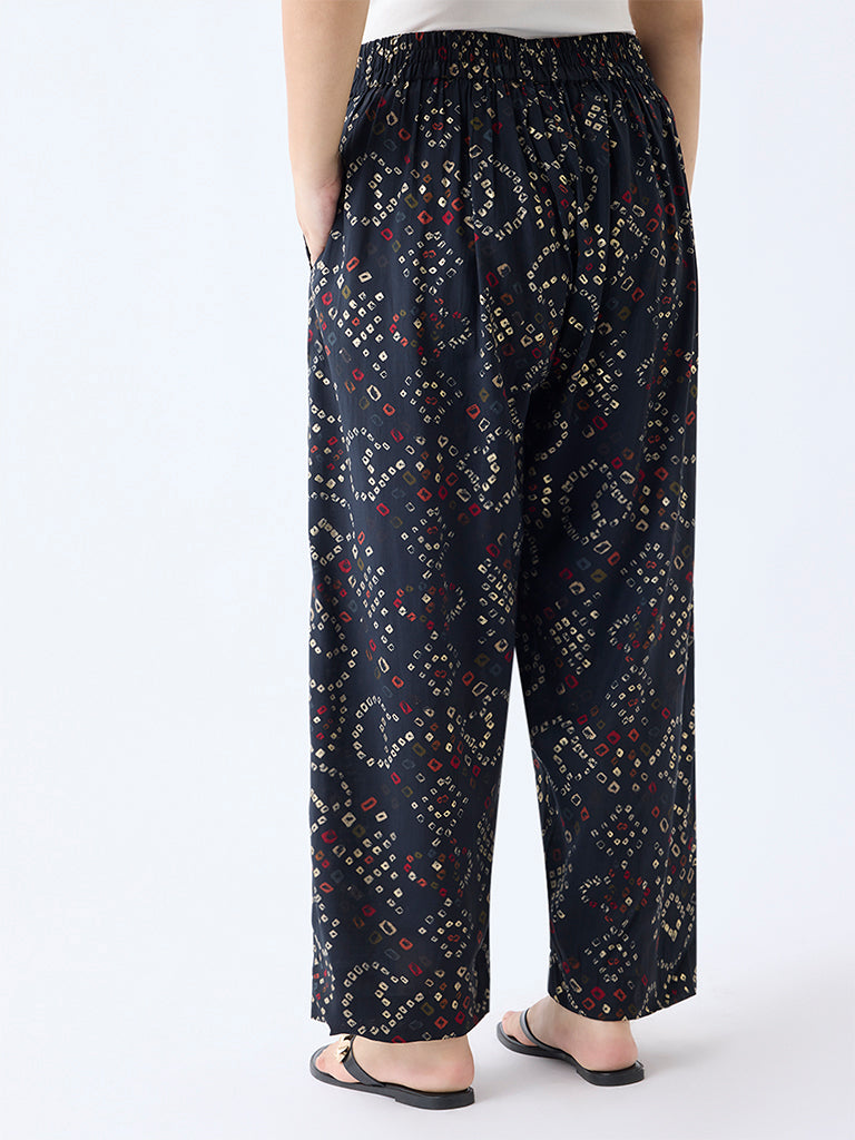 Ideal for the upcoming festive season, these black ethnic pants from Diza are a definite must-have. Crafted to ensure breathability and comfort all through the day, they feature bandhani-inspired geometrical designs for an elegant touch.