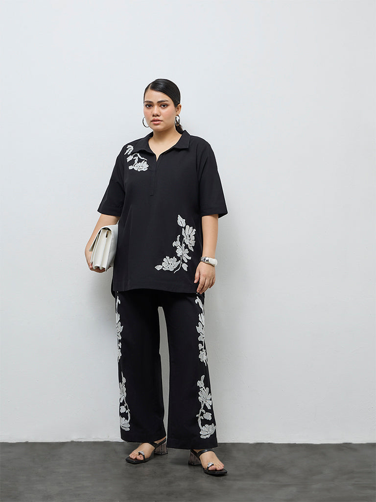 Diza Black Foliage Embroidered Tunic