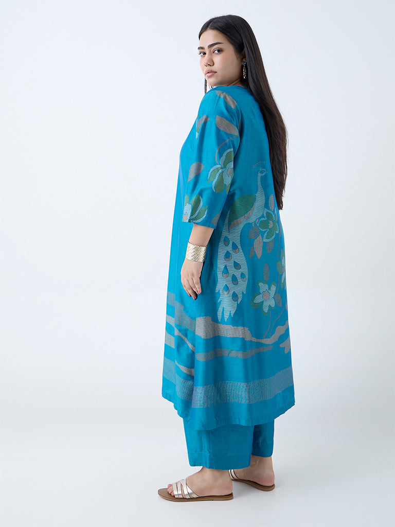 Shaped in a flattering A-line silhouette, this blue kurta from Diza is elevated with nature-inspired prints that feel festive yet versatile. Milled from premium fabric, it’s styled with a flattering V-neck, three-quarter sleeves, and a slip pocket for a balance of elegance and ease.