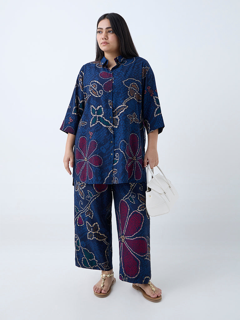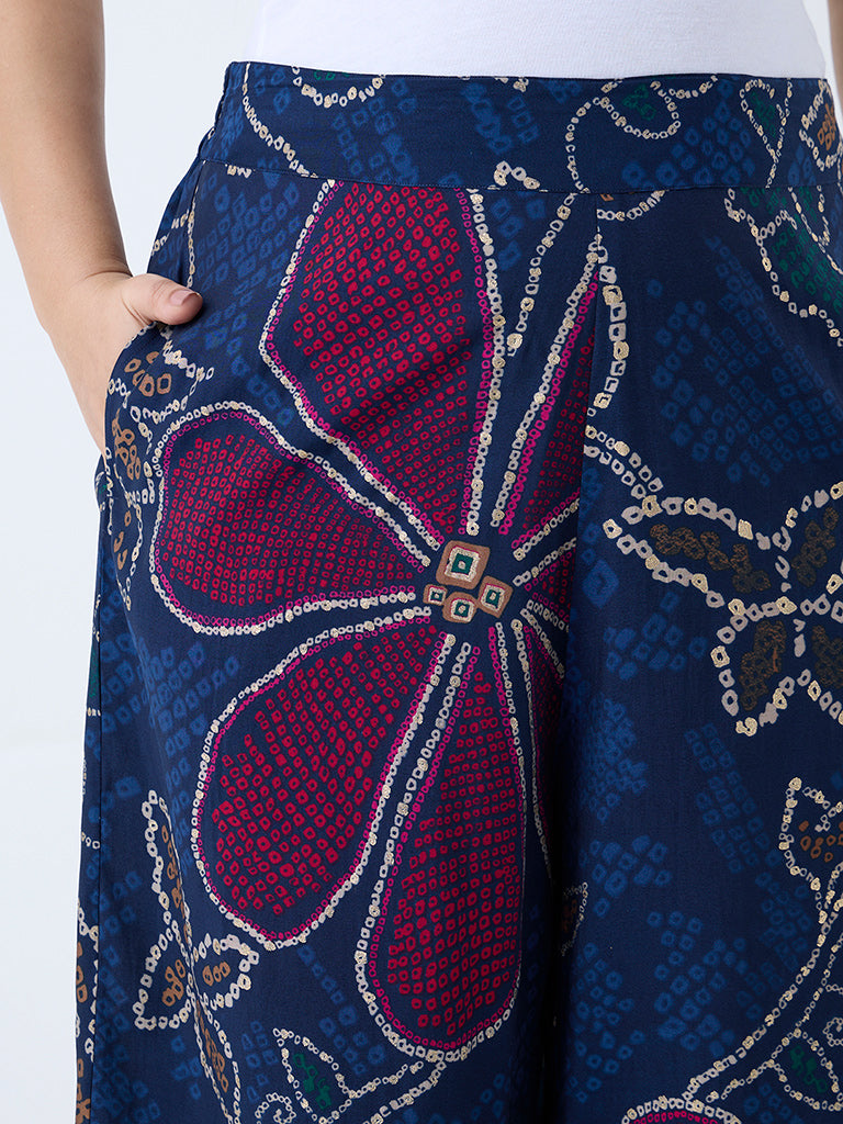 Diza Indigo Bandhani Floral Pattern Pants