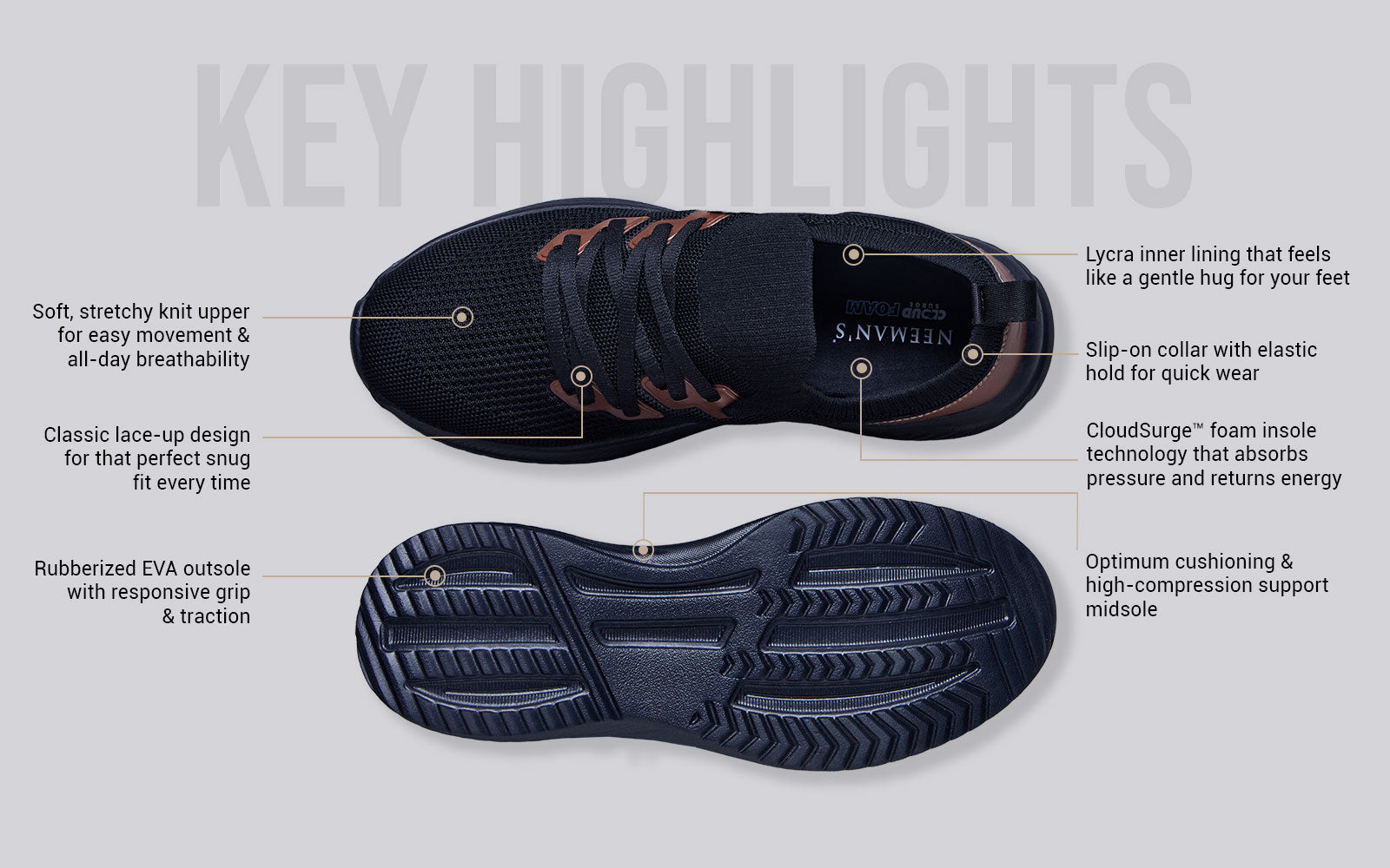 Like a hug for each of those 10,000 steps. Every single day. That’s the idea we crafted the easeWALK Snug with. Made with breathable knit fabric and optimum cushioning, these sneakers mold to your feet, wrapping them in softness while keeping things light and airy. Snug, stretchable, and effortlessly comfy, they move with you. So you can focus on your walking, not what’s on your feet.