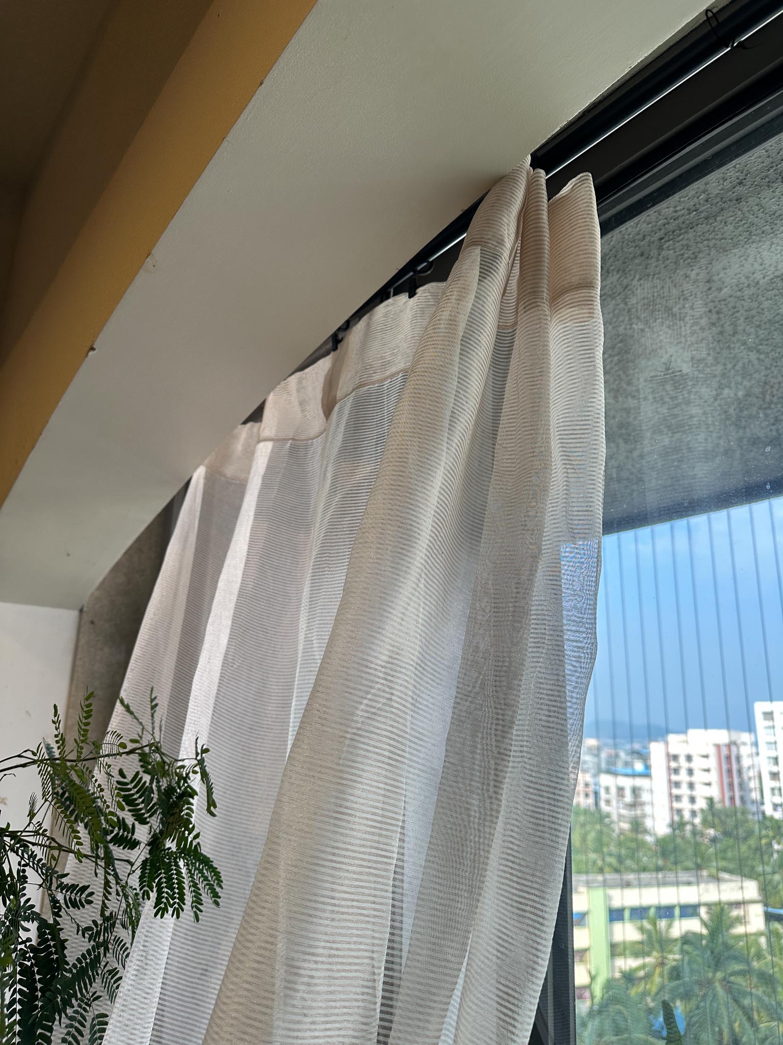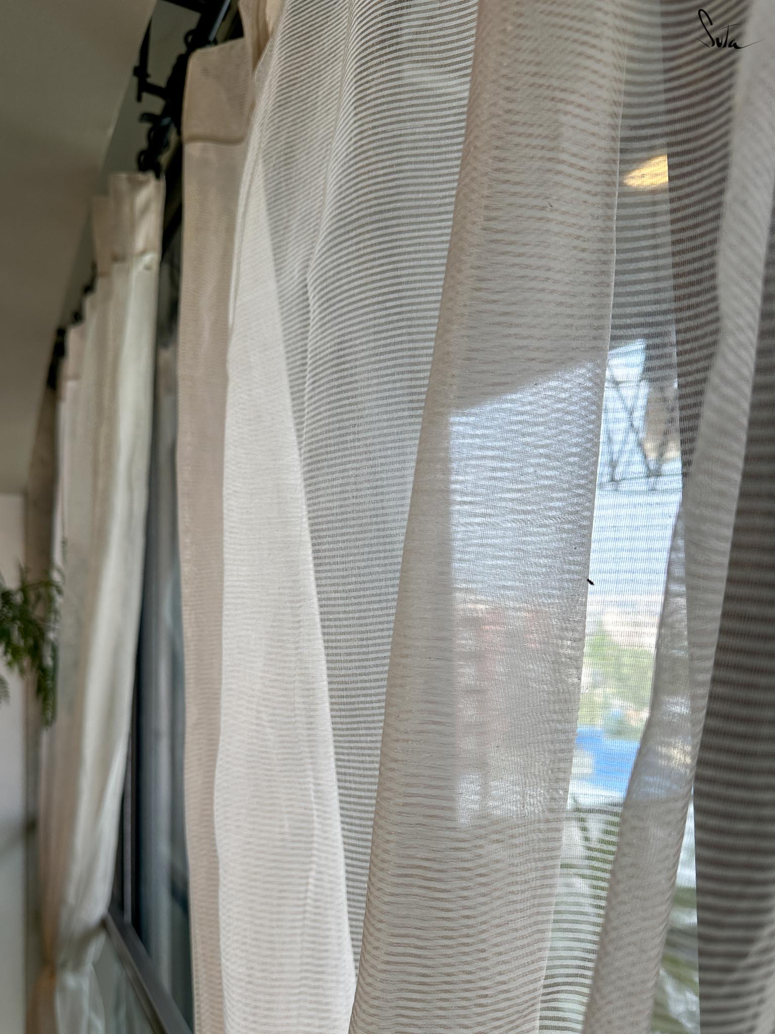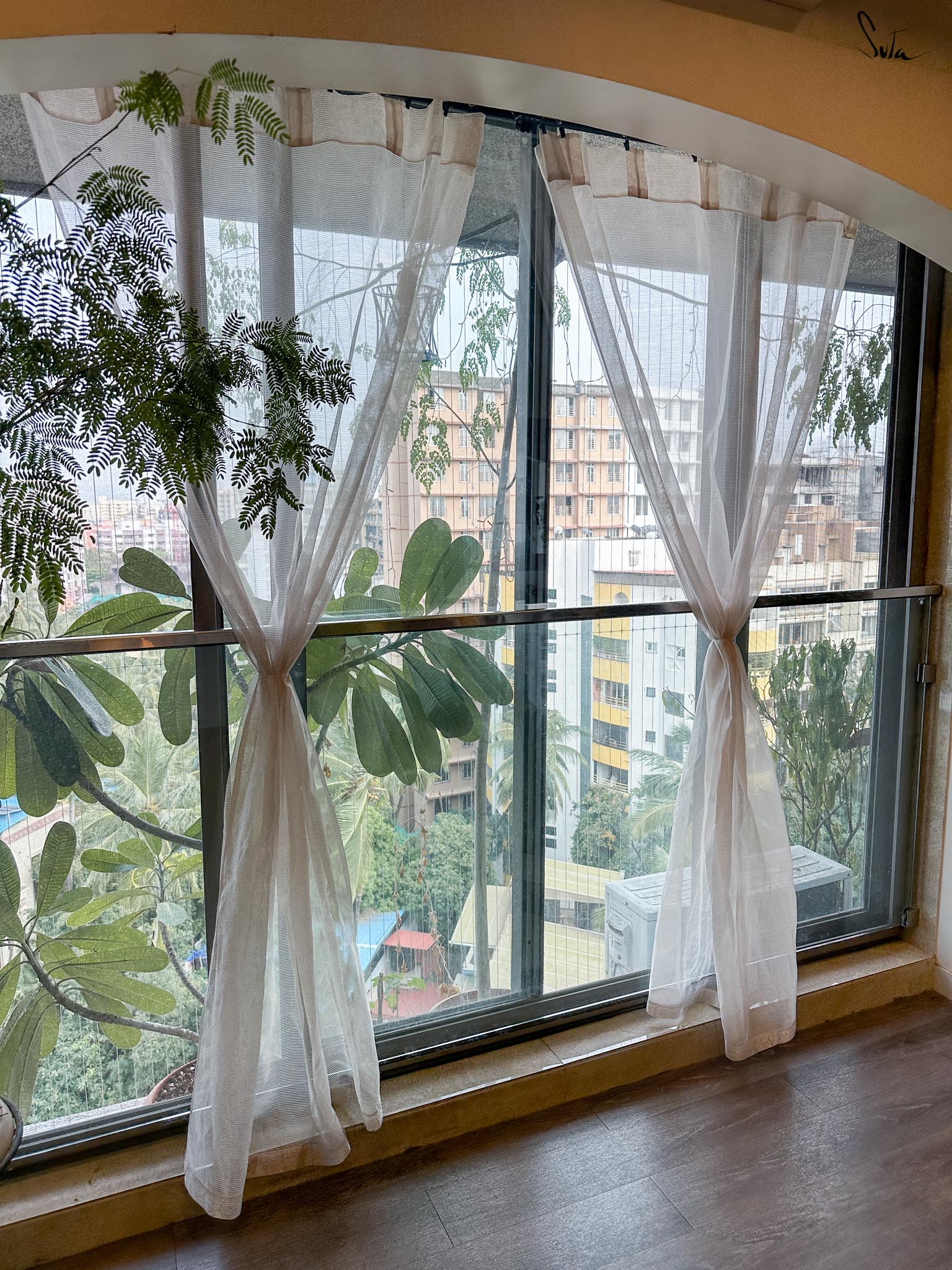 Introduce purity and elegance to your home with Eira, the curtains are crafted from delicate organza silk with refined zari accents, these crisp white curtains represent the beauty of freshly fallen snow, embodying clarity and tranquility. The airy fabric allows natural light to filter gently, creating a bright and uplifting atmosphere.