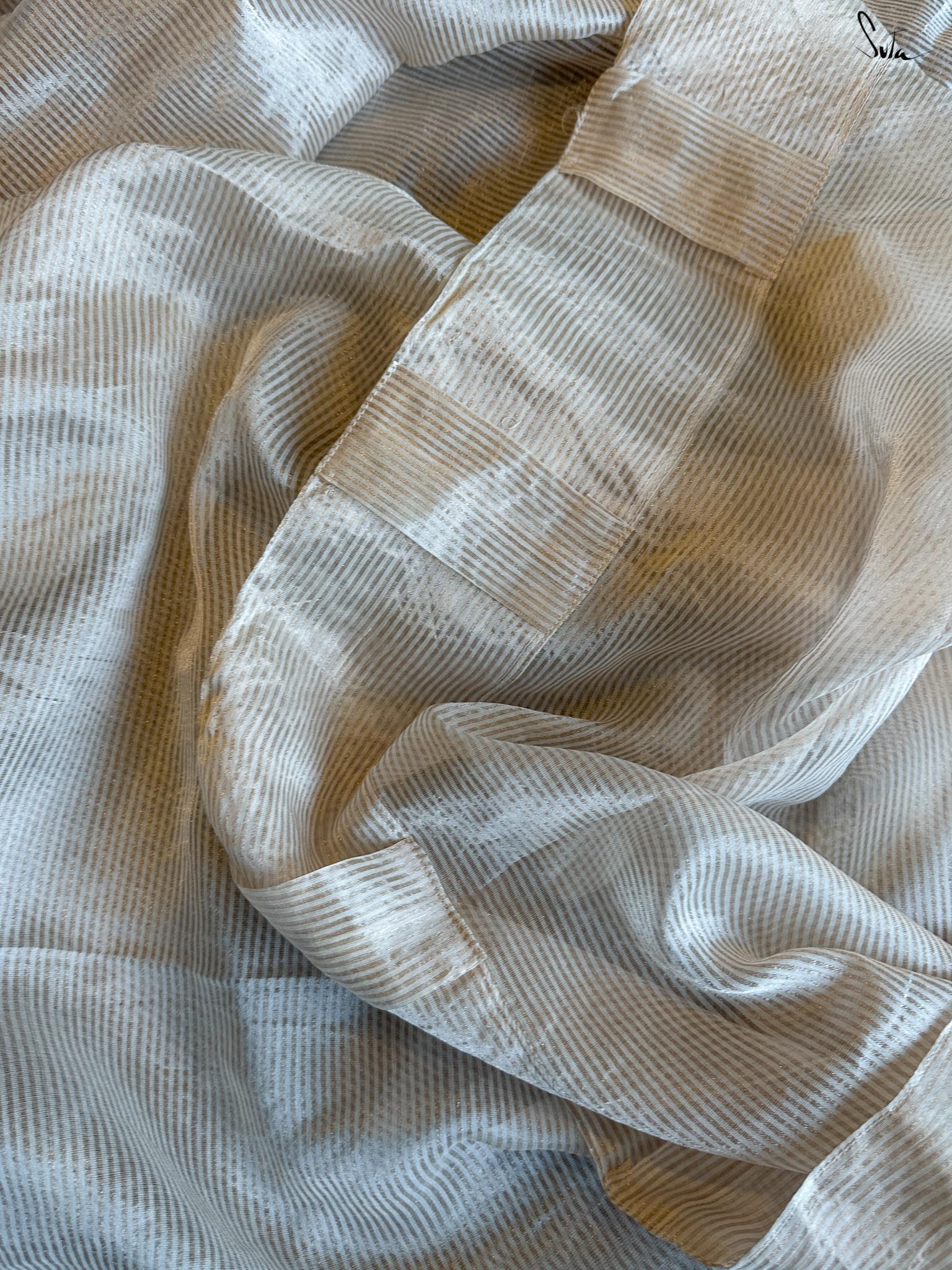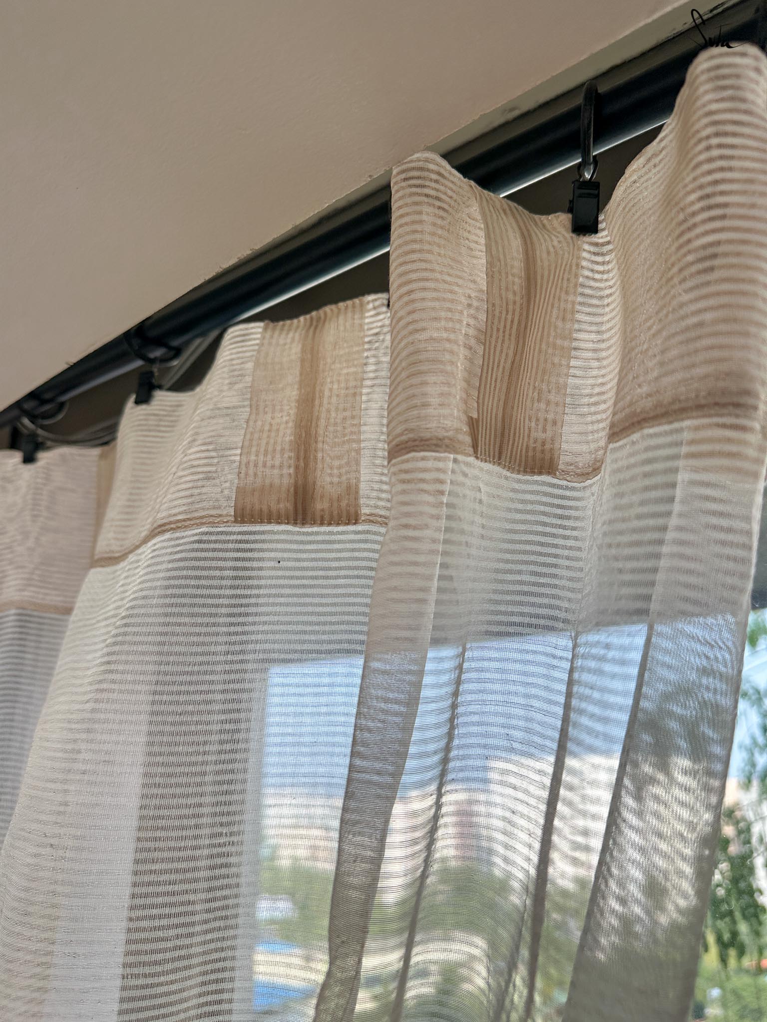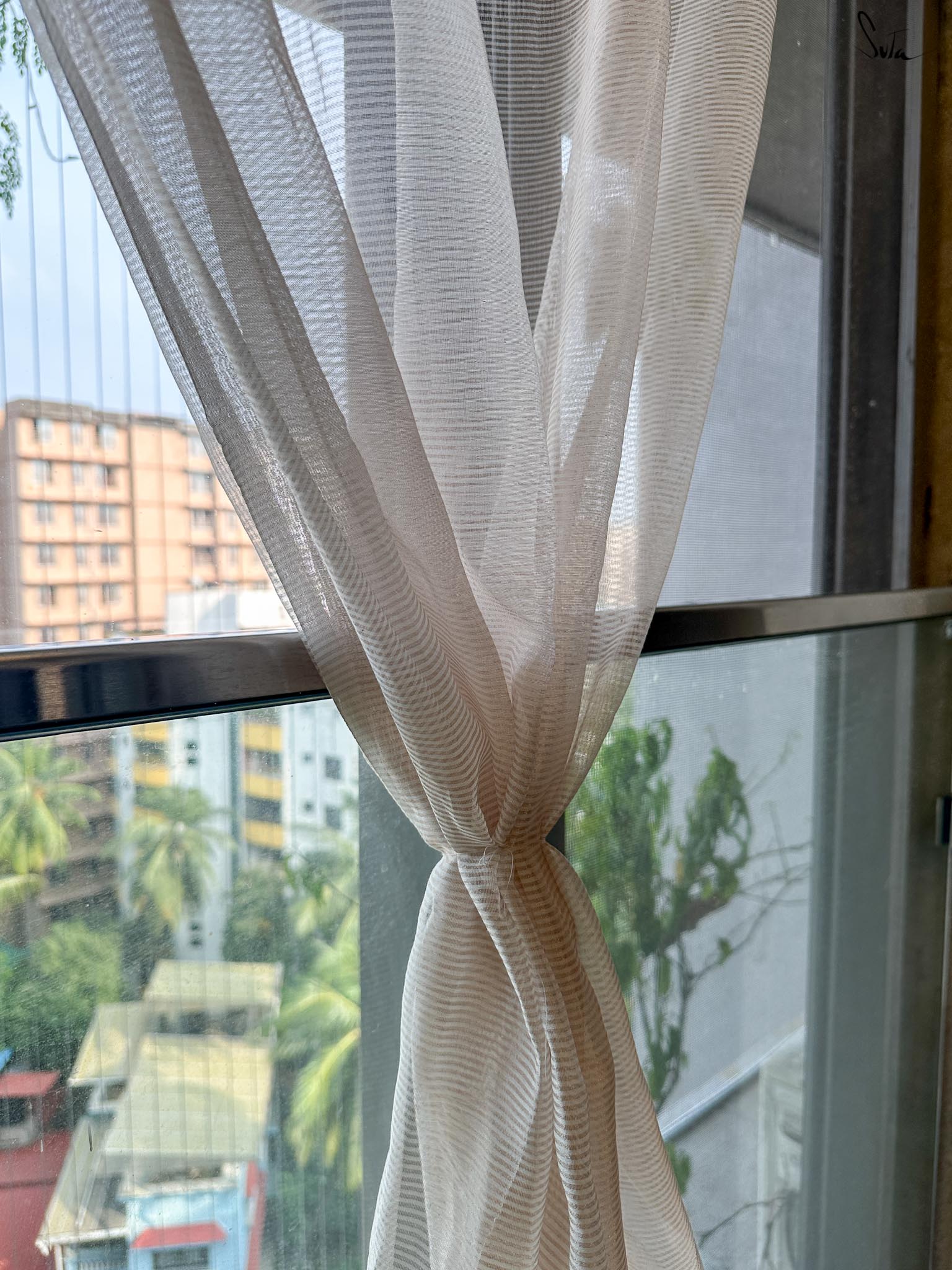 Introduce purity and elegance to your home with Eira, the curtains are crafted from delicate organza silk with refined zari accents, these crisp white curtains represent the beauty of freshly fallen snow, embodying clarity and tranquility. The airy fabric allows natural light to filter gently, creating a bright and uplifting atmosphere.