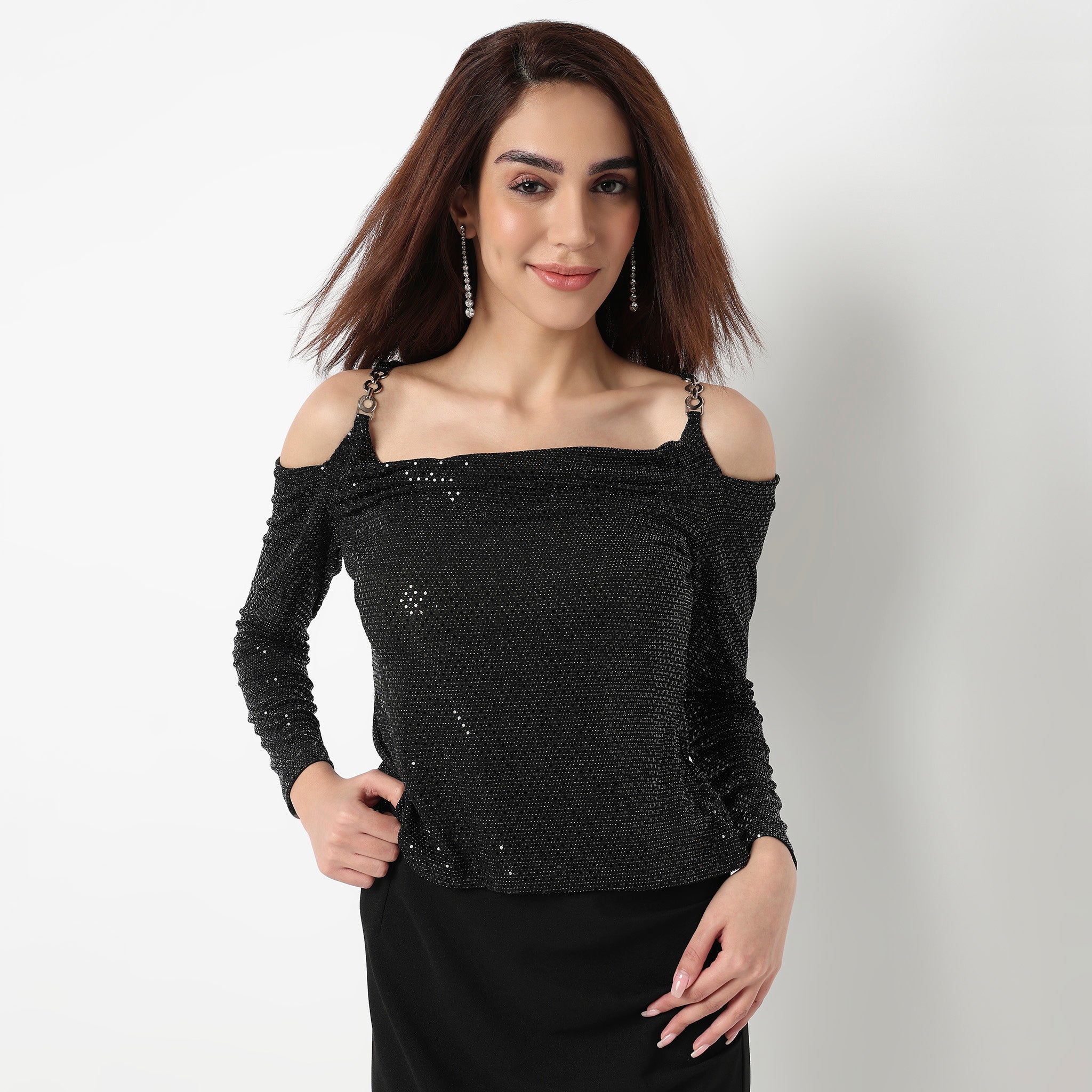 Style this top with sleek trousers and statement heels for a glamorous party-ready outfit.