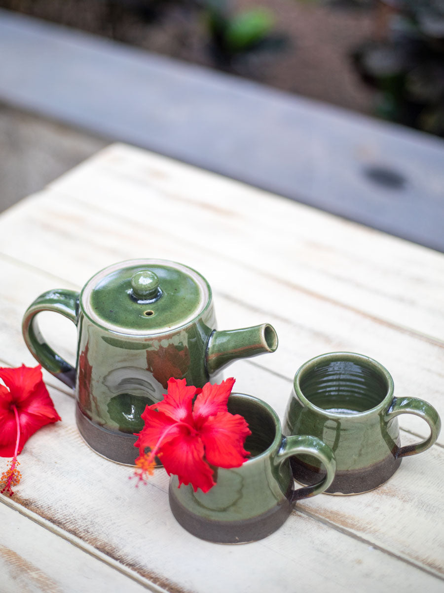 - Hand-thrown, glazed ceramic tea pot set