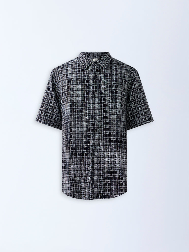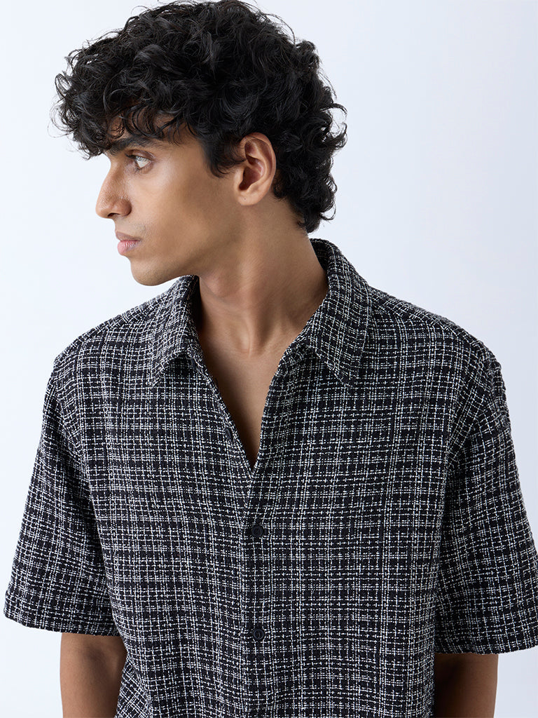 ETA Black Checks Detailed Relaxed-Fit Cotton Shirt