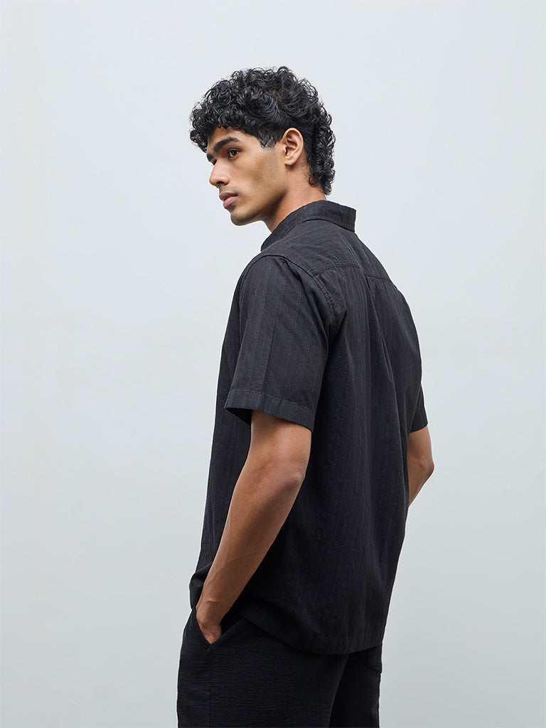 ETA Black Striped Relaxed-Fit Cotton Shirt