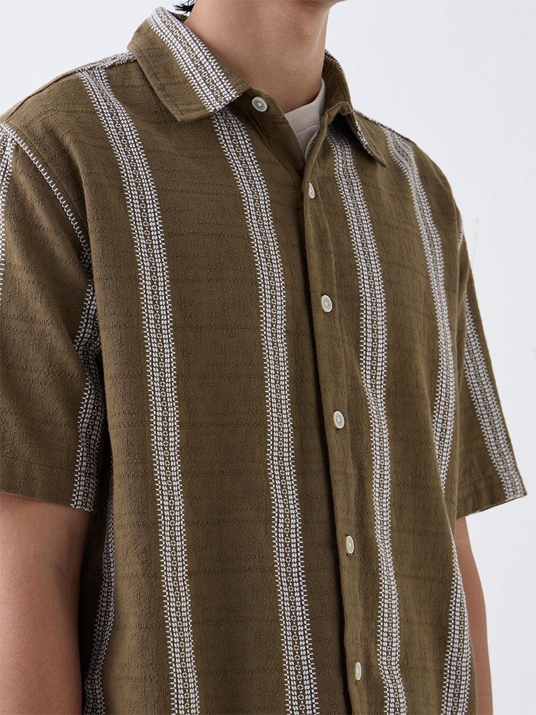 ETA Brown Embroidered Relaxed-Fit Cotton Shirt