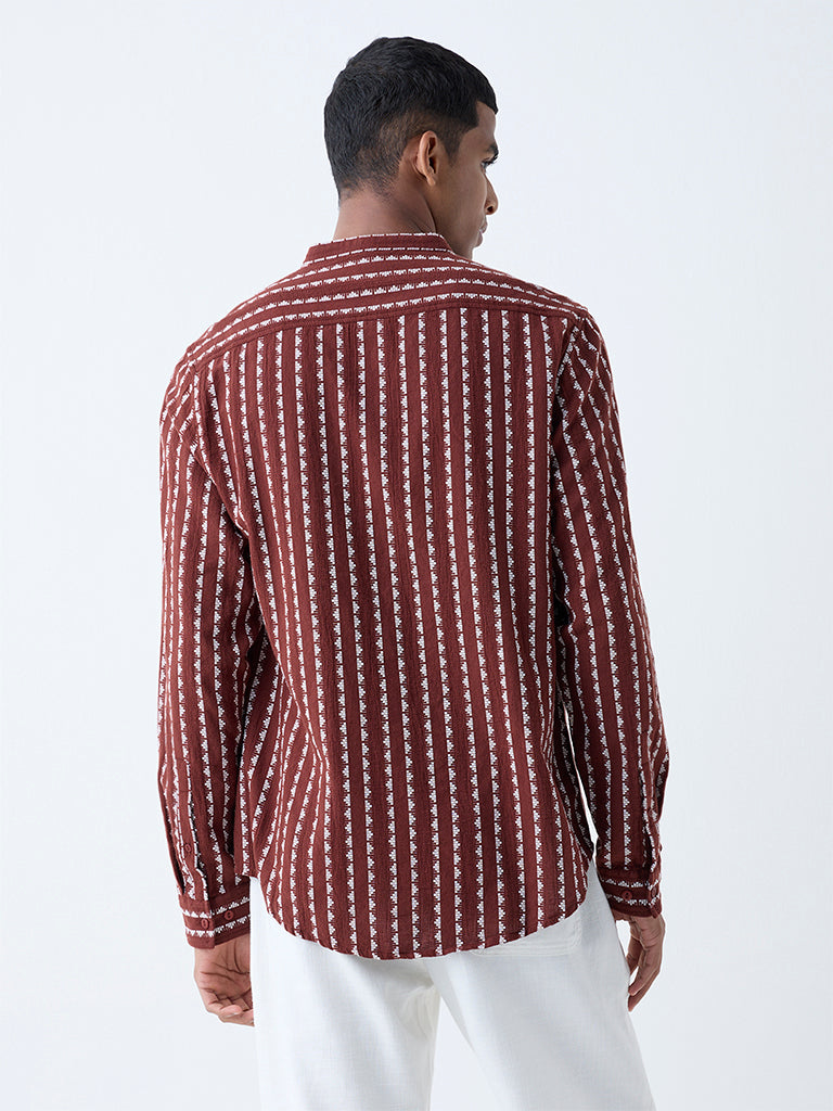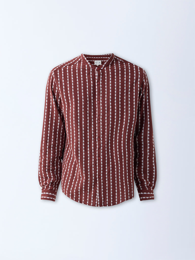 ETA Brown Embroidered Resort-Fit Cotton Shirt