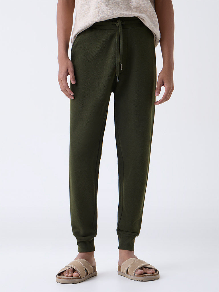 ETA Dark Olive Relaxed-Fit Mid-Rise Cotton-Blend Joggers