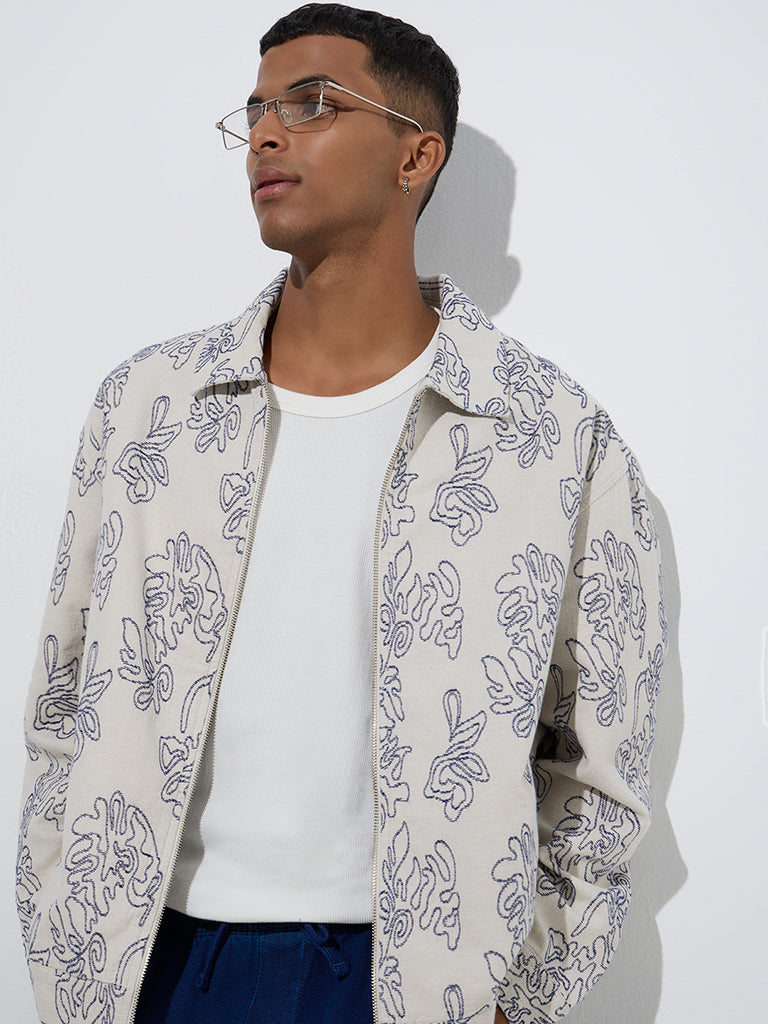 ETA Off-White Abstract Design Relaxed-Fit Cotton Jacket