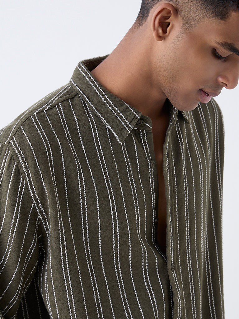 ETA Olive Striped Relaxed-Fit Cotton Shirt