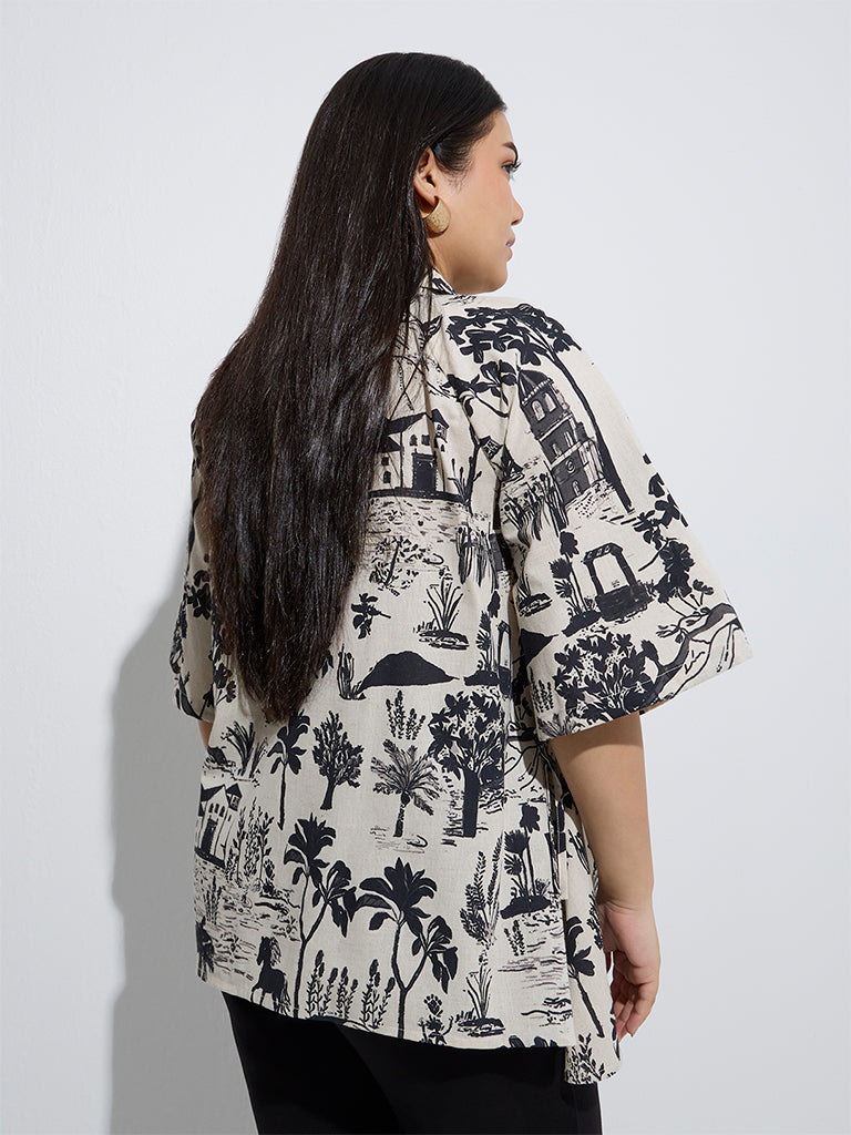 Gia Beige Scenic-Inspired Cotton-Blend Shirt