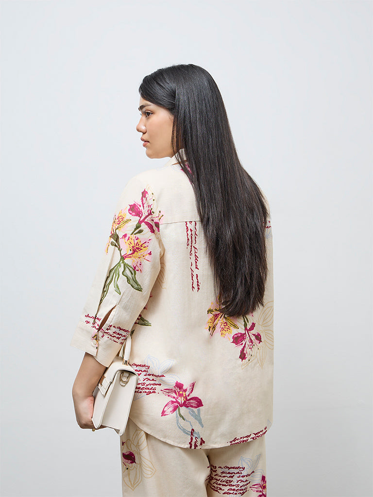 Gia Cream Floral Pattern Cotton-Blend Shirt