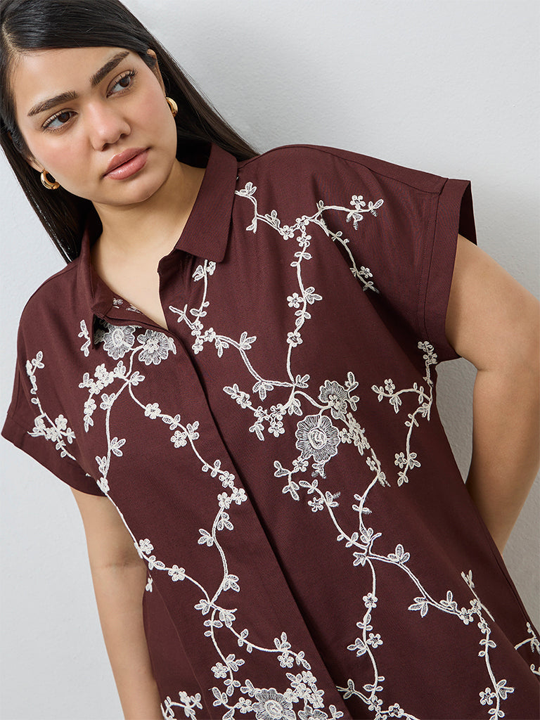 Gia Dark Brown Floral Embroidered Shirt