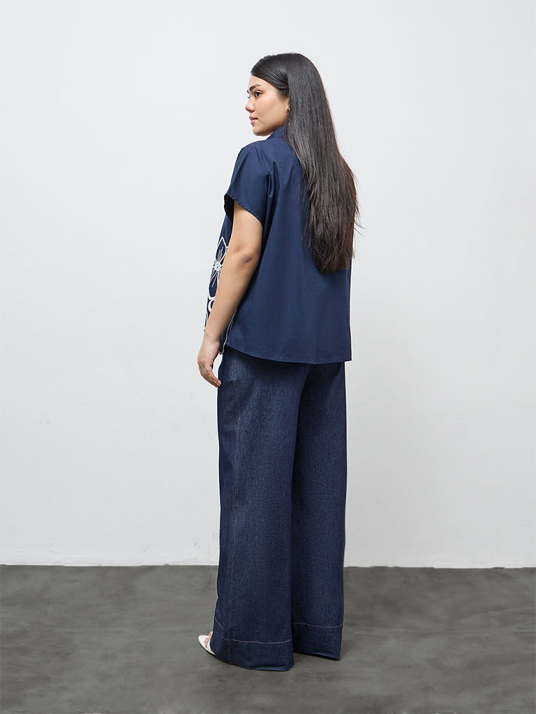 Bring a feminine accent to casual days with this navy blouse from Gia, adorned with delicate floral embroidery for subtle charm. Crafted from a cotton-rich fabric, it is designed with a collar that extends to a quarter button placket and relaxed dolman sleeves, creating an easy, contemporary silhouette.