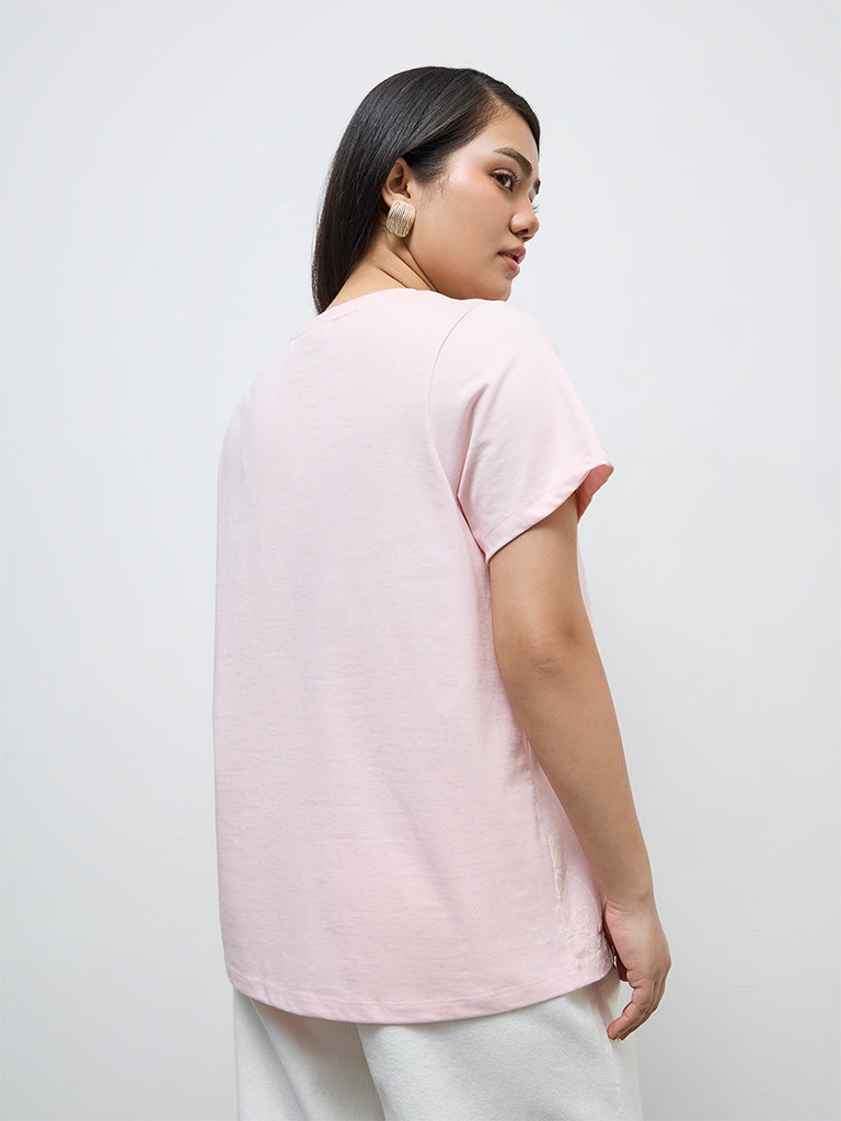 Gia Pink Floral Embroidered Cotton T-Shirt