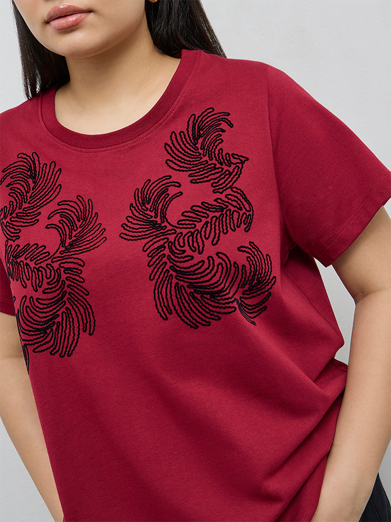 Gia Red Embroidered Cotton T-Shirt