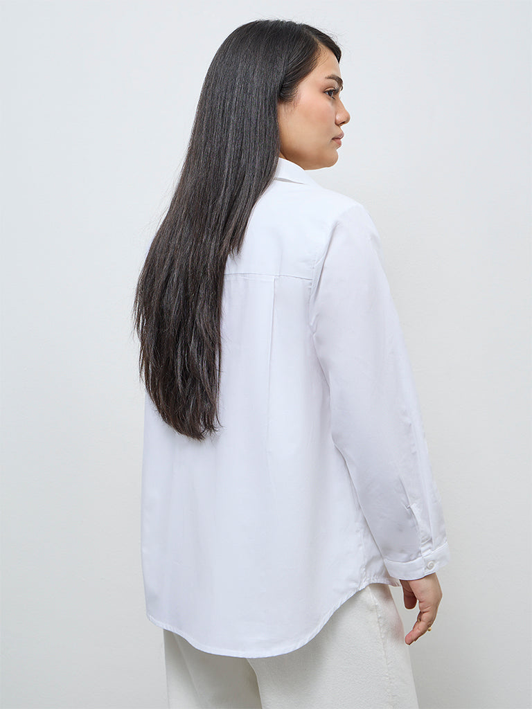 Gia White Floral Embellished Cotton Shirt