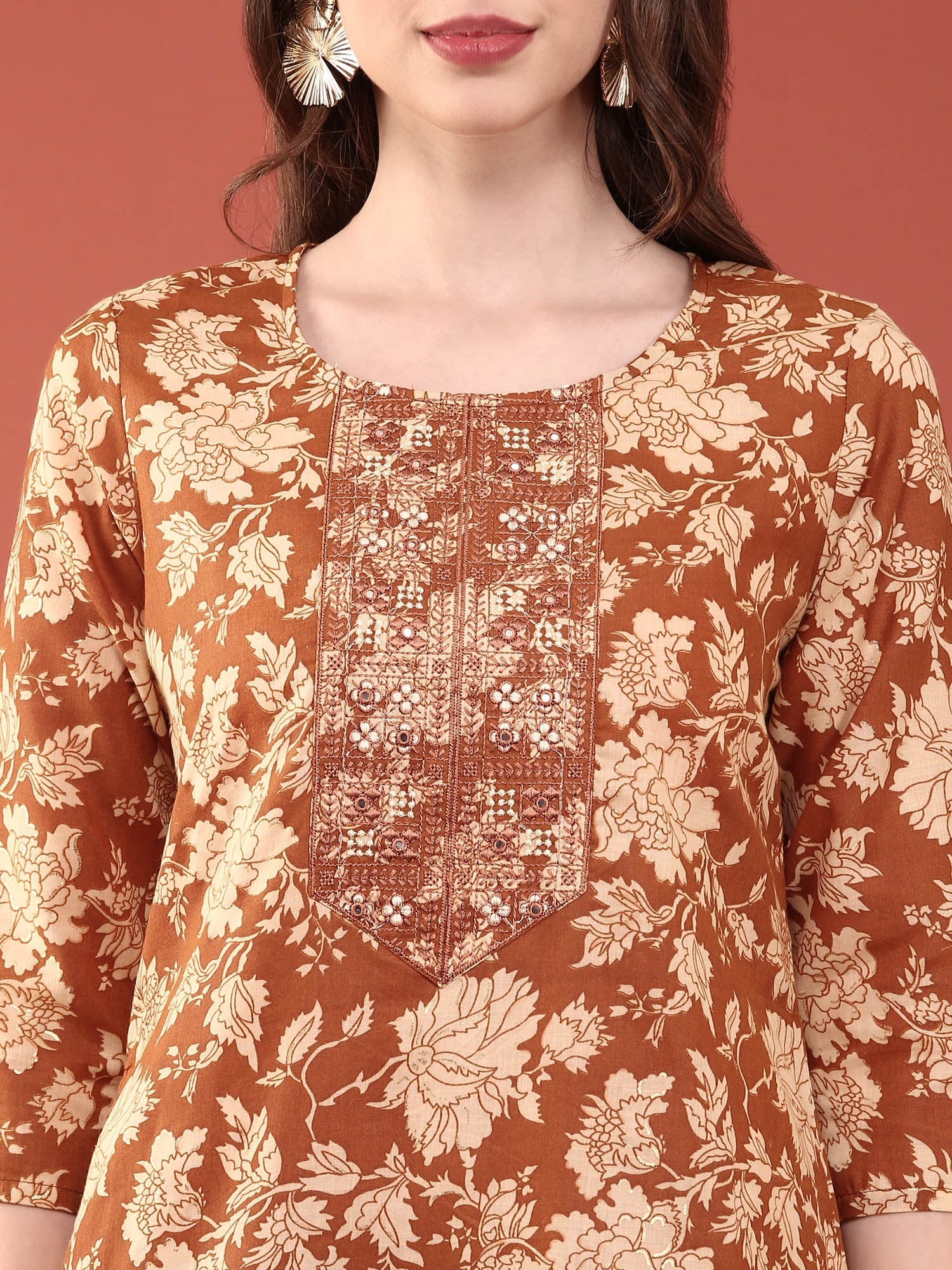 Gold Modal Silk Floral Digital Print Three Piece Set