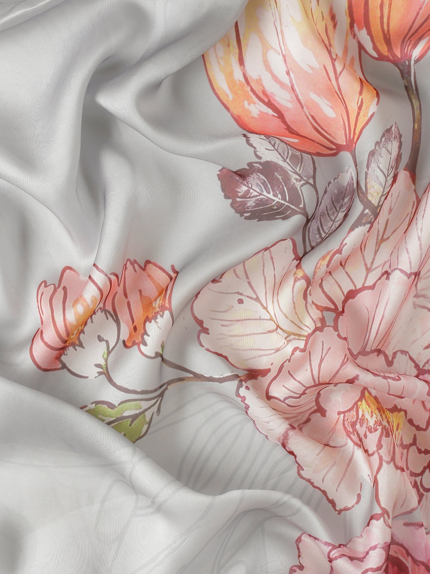 Elevate your wardrobe with this exquisite satin saree featuring a delicate floral print enhanced by intricate Swarovski embroidery. The smooth satin fabric offers a luxurious drape and subtle sheen, while the sparkling Swarovski accents add a refined elegance. Perfect for special occasions, this saree combines timeless design with expert craftsmanship to ensure you make a graceful statement.