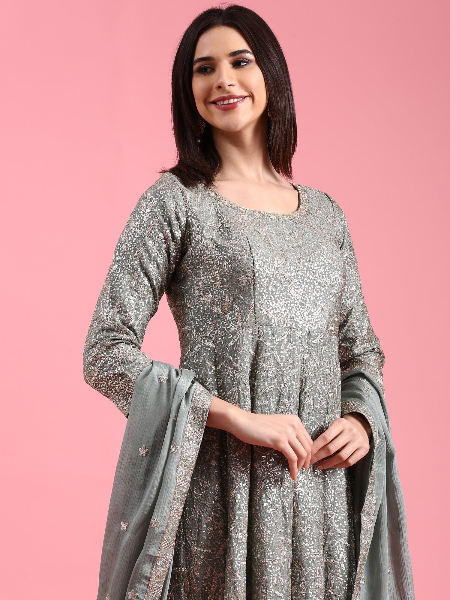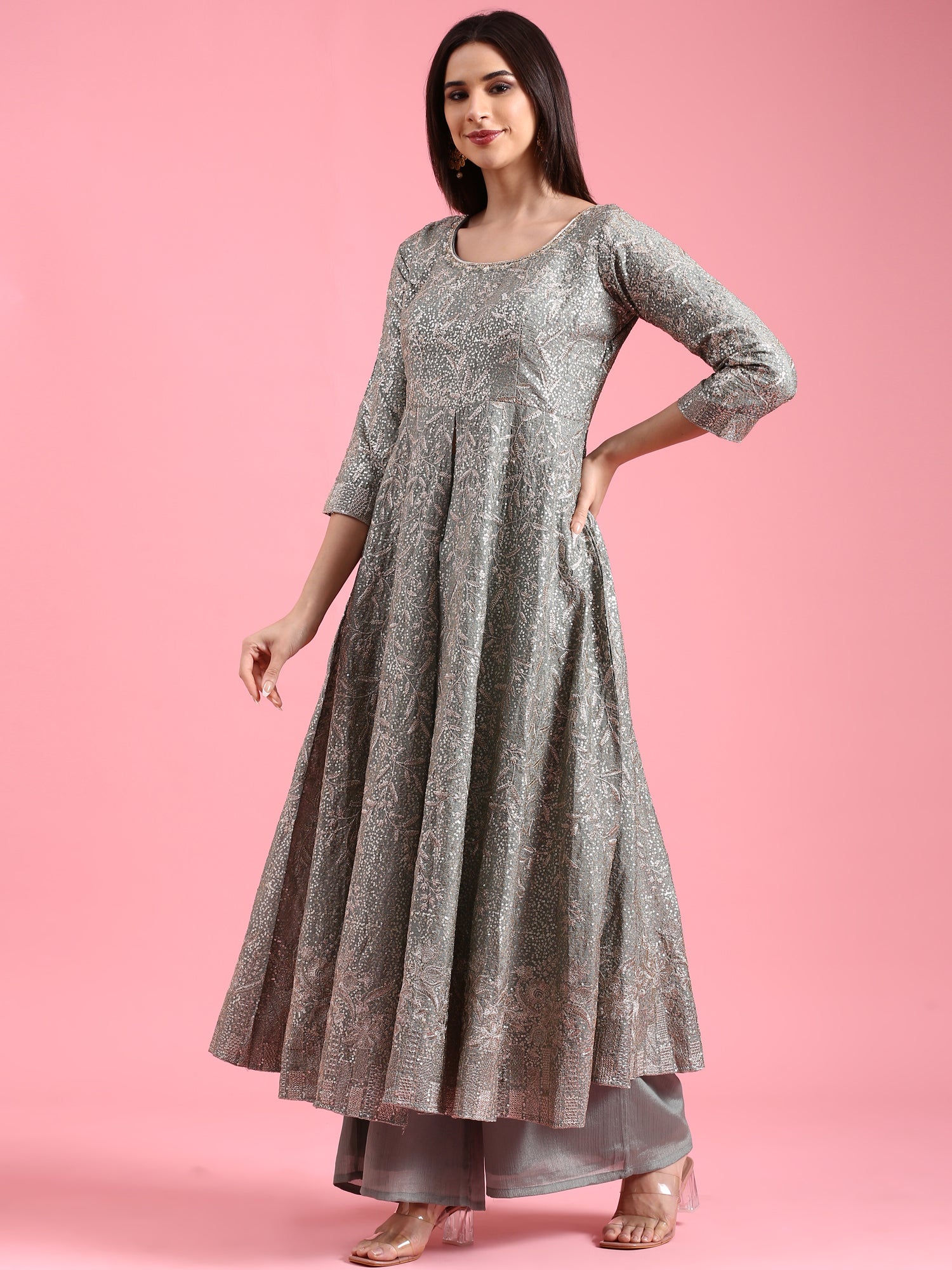 Green Chinon Heavy Embroidered Kali With Palazzo