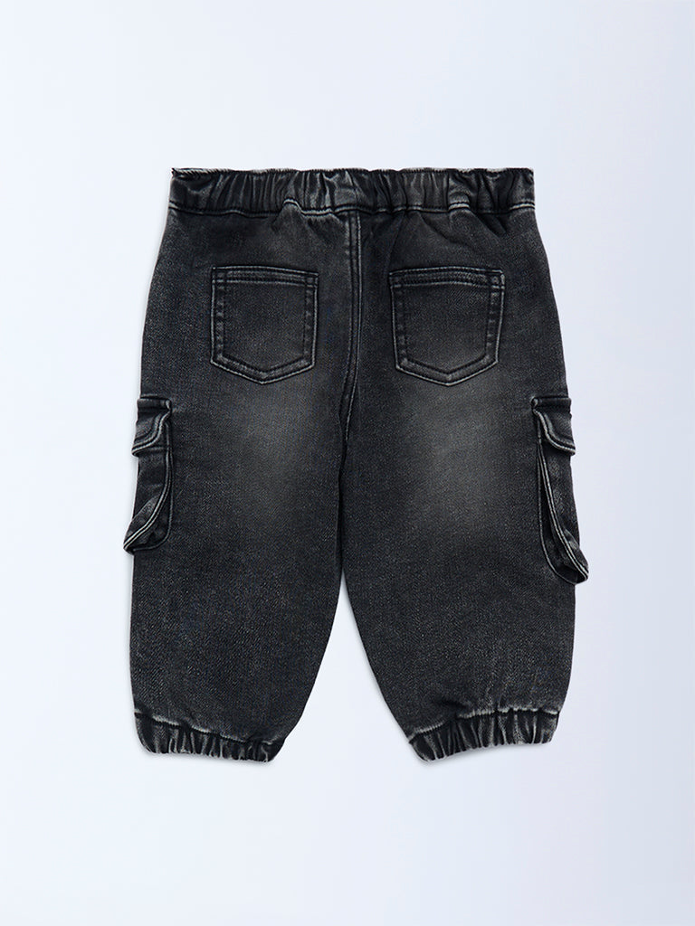 HOP Baby Black Faded Mid-Rise Denim Joggers