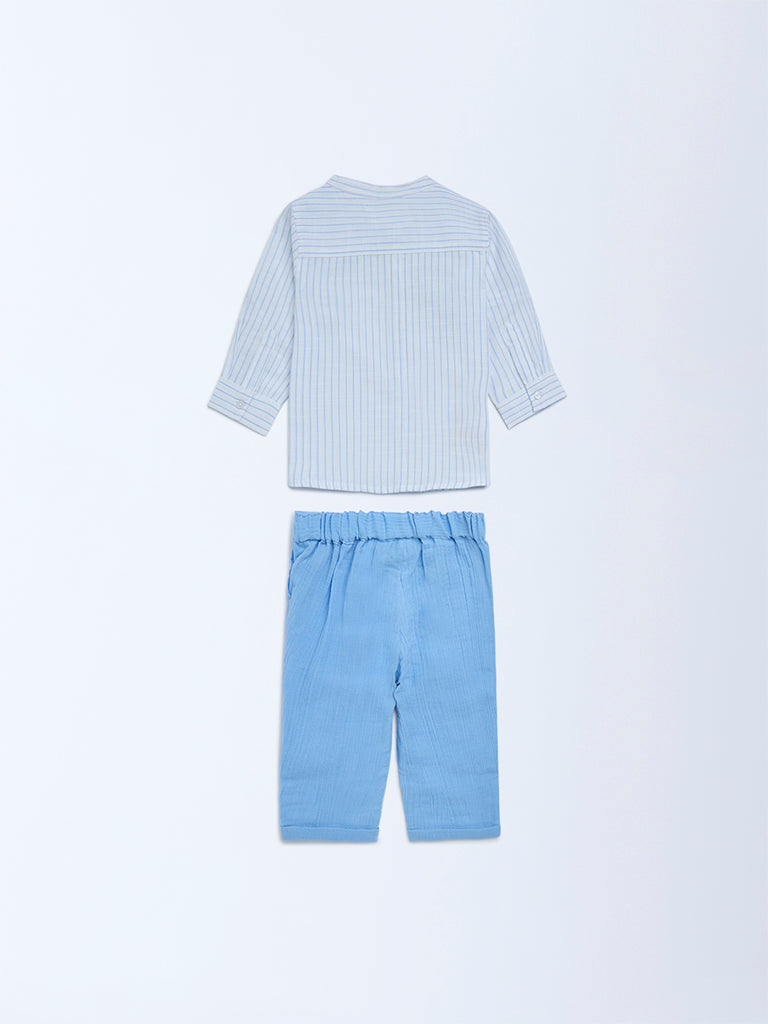 HOP Baby Boys Blue Striped Cotton Shirt and Pants Set