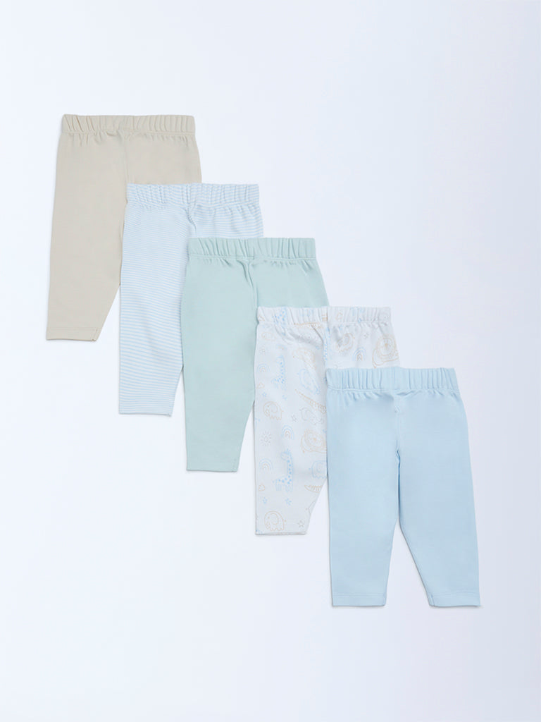 HOP Baby Boys Multicolour Printed Mid-Rise Cotton Pants - Pack of 5