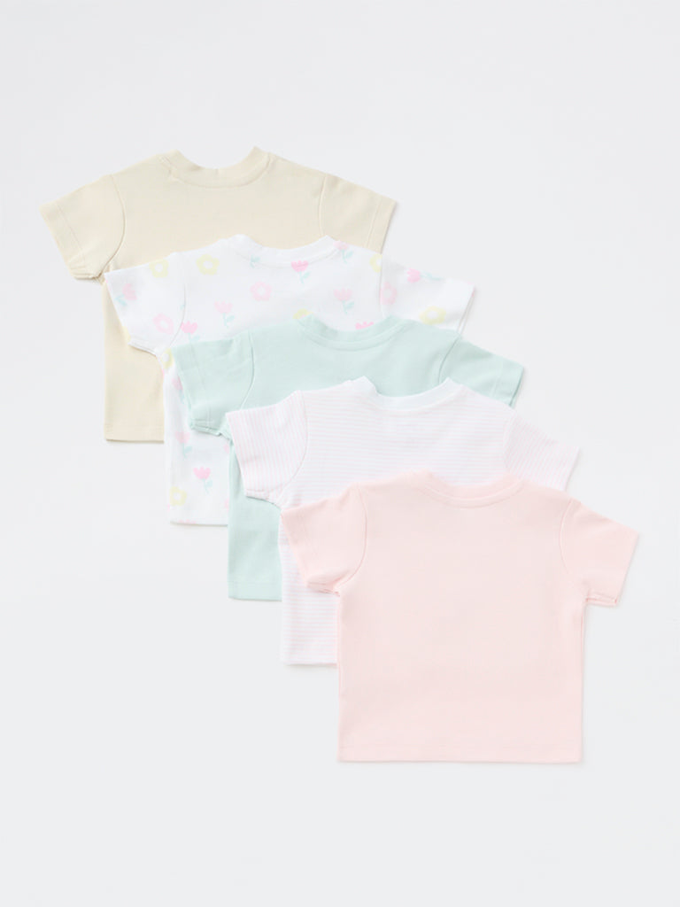 HOP Baby Girls Multicolour Cotton T-Shirt - Pack of 5