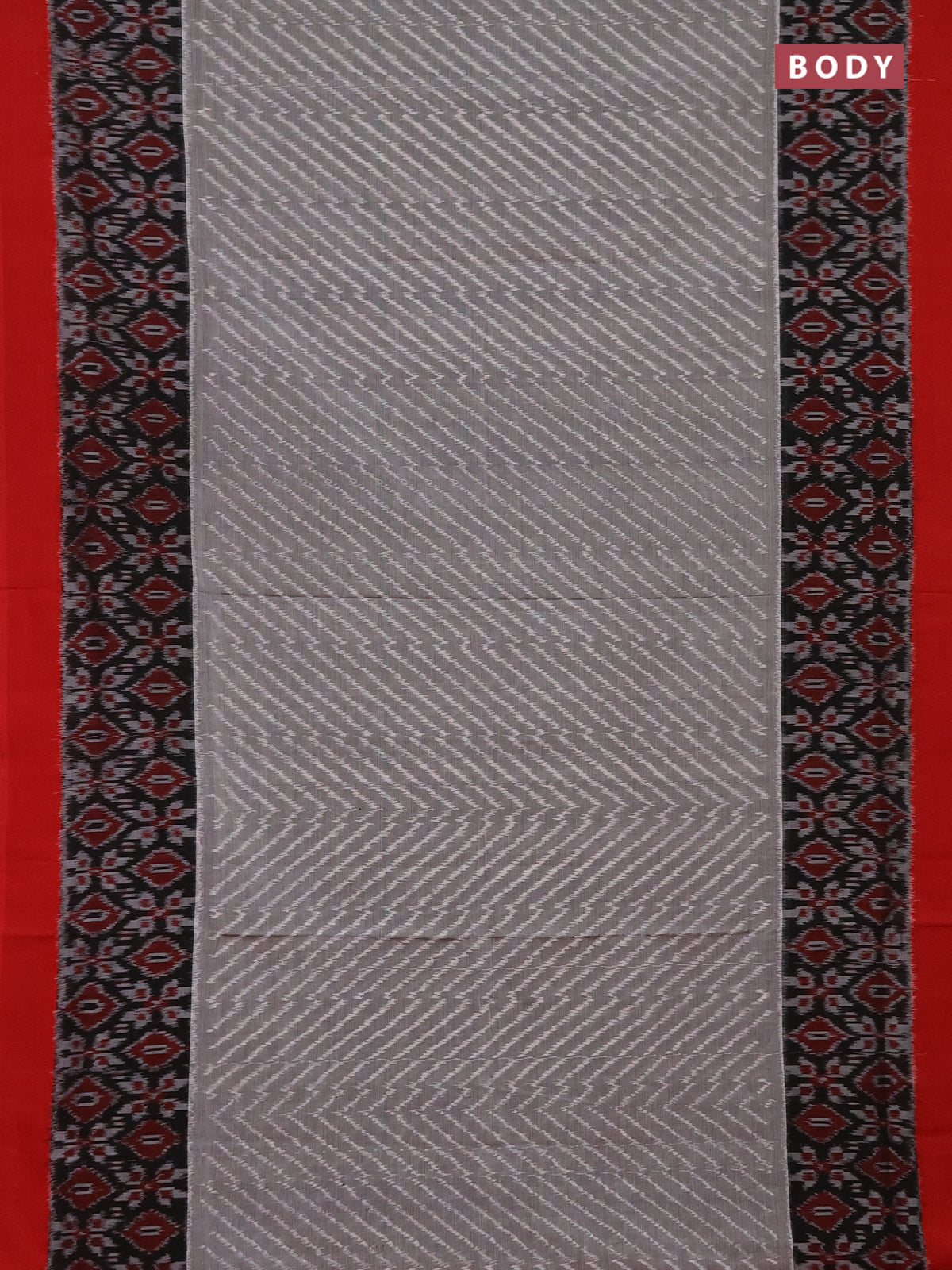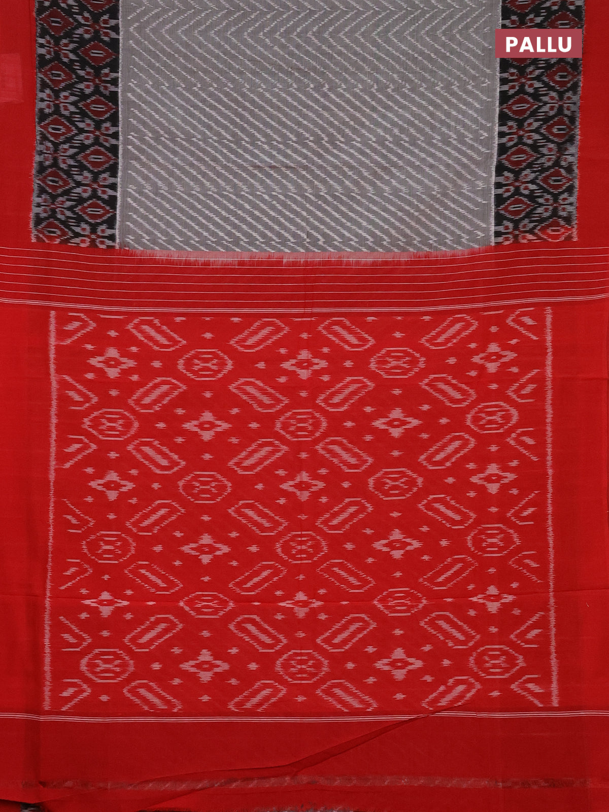 Ikat cotton saree grey black and red with allover ikat weaves and long ikat border