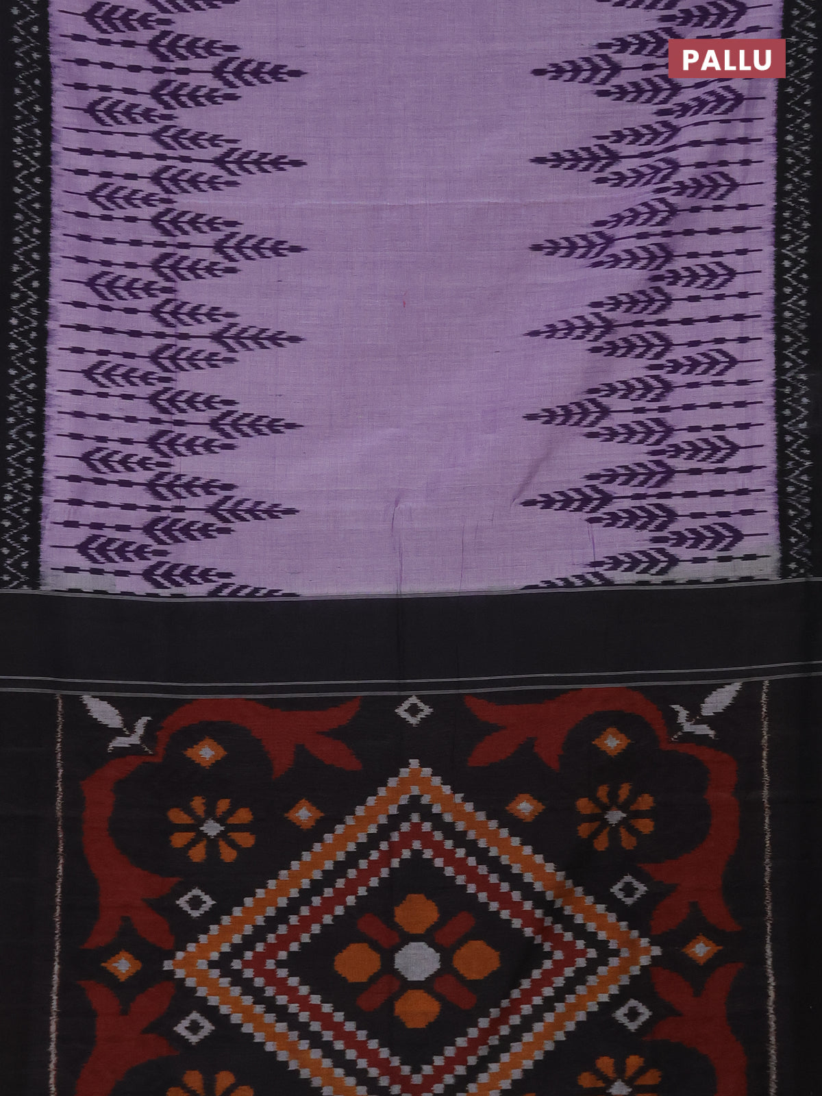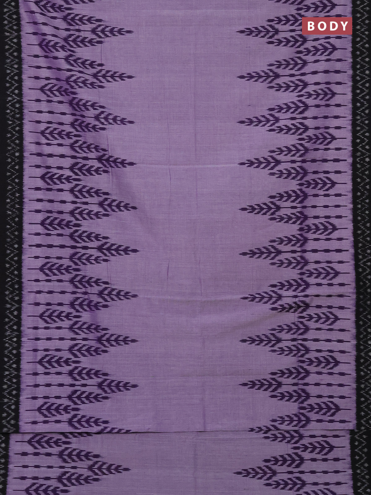 Ikat cotton saree lavender and black with allover ikat weaves and simple border