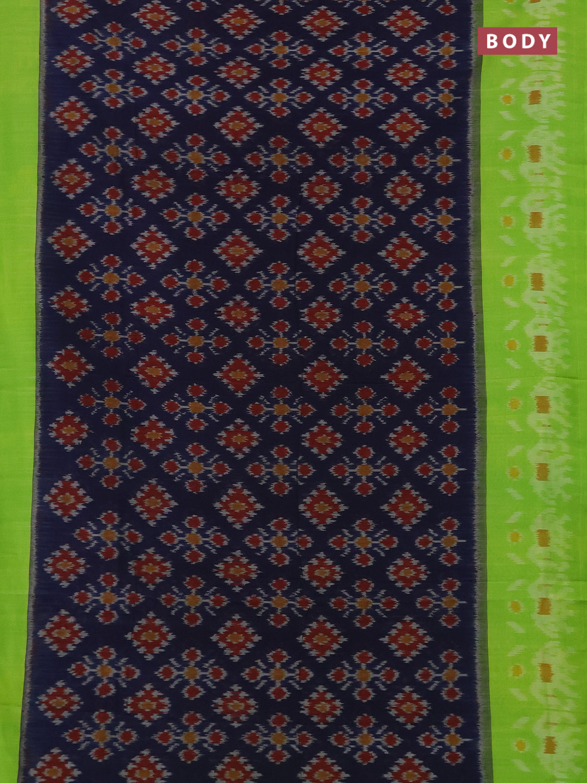 Ikat cotton saree navy blue and light green with allover ikat butta weaves and long ikat style border
