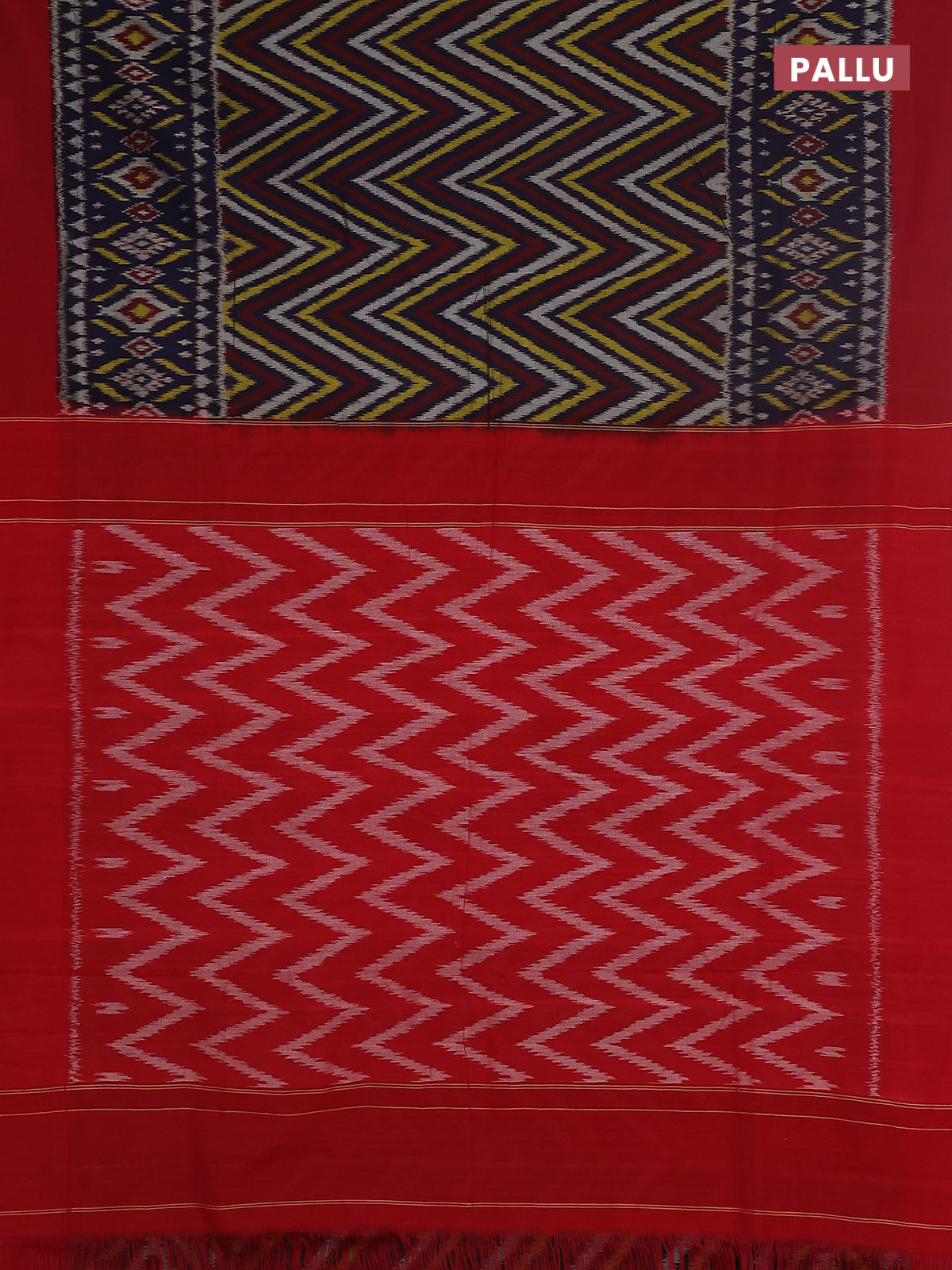 Ikat cotton saree navy blue and maroon with allover ikat weaves and simple border