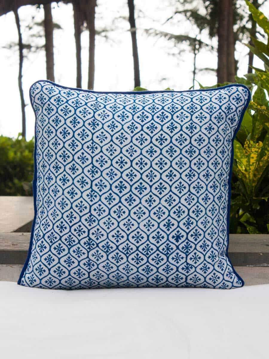 Indigo Block Printed Cotton Cushion Cover - 12 Inch