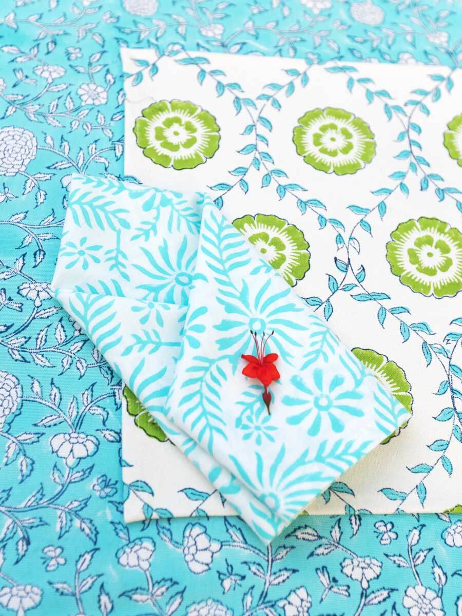 Iris Block Printed Cotton Table Napkins