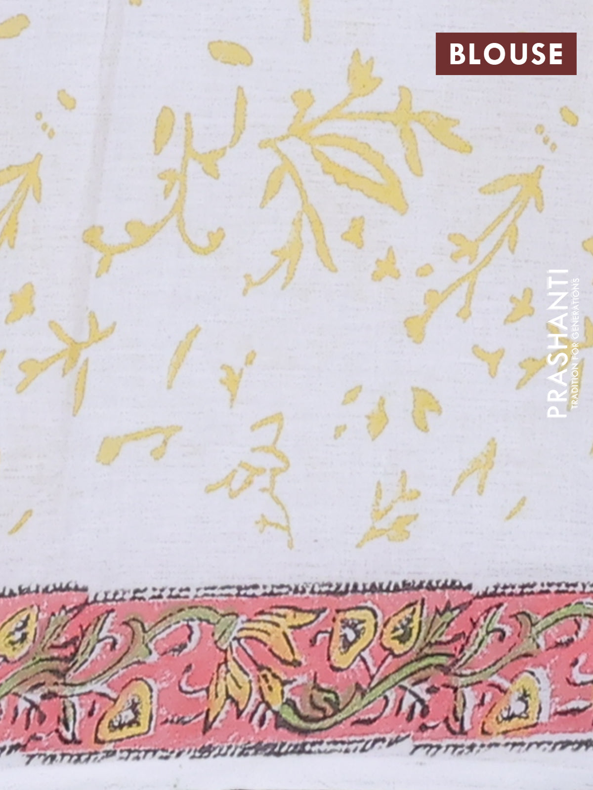 Jaipur cotton saree off white and peach with butta prints and printed border
