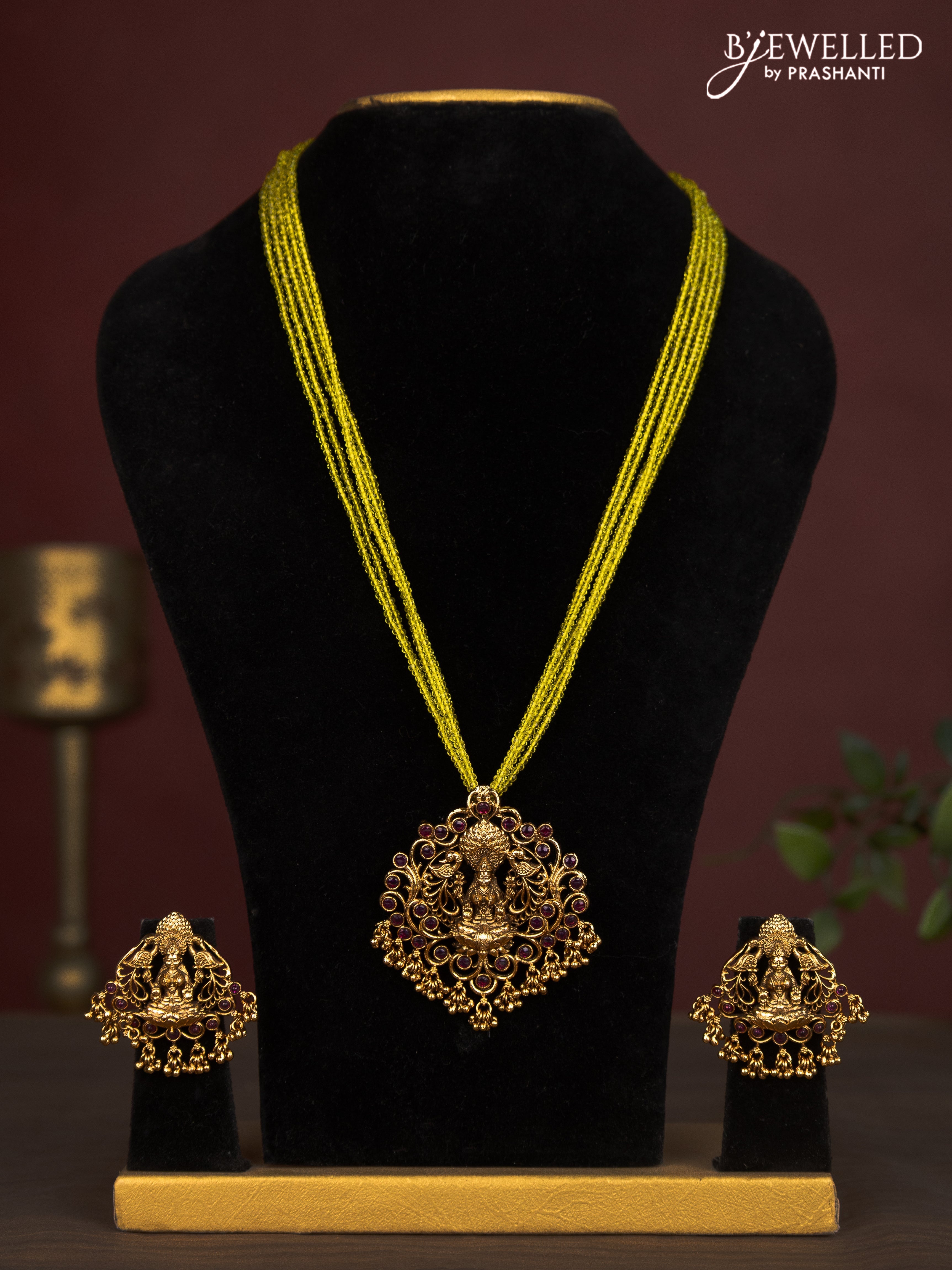 Jaipur crystal beaded multilayer yellow necklace with lakshmi pendant