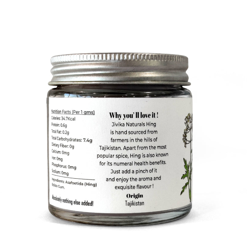 - ASAFOETIDA the plant is sourced from the Hing growing country Tajikistan.