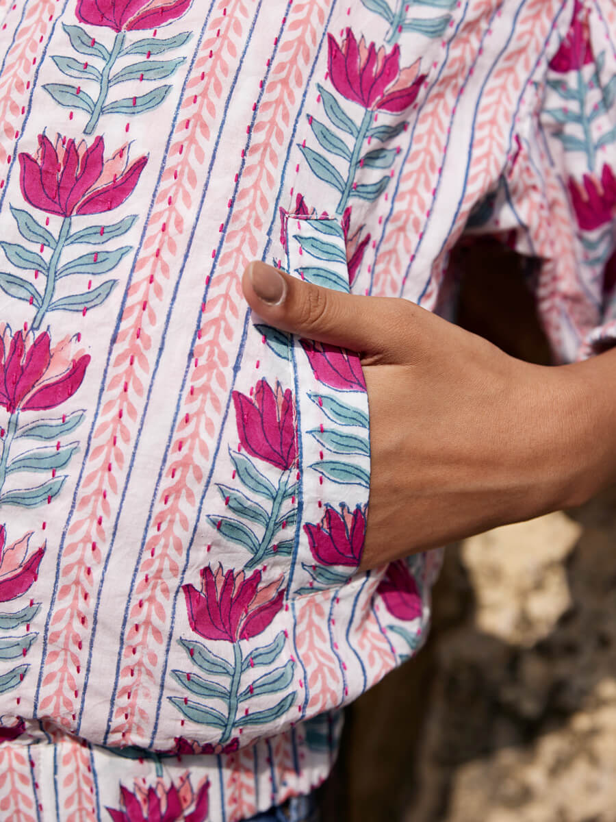 Julie Kantha Embroidered Block Printed Bomber Jacket