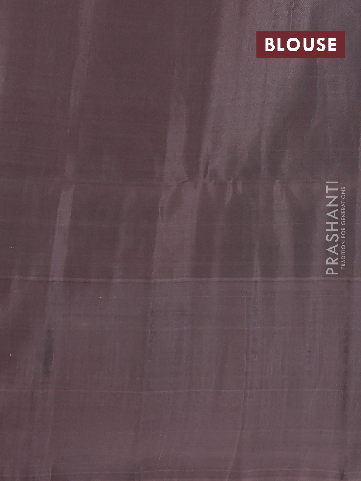 Kanchipuram soft silk saree teal green shade and pastel brown with allover zari stripe pattern and long rich zari woven border