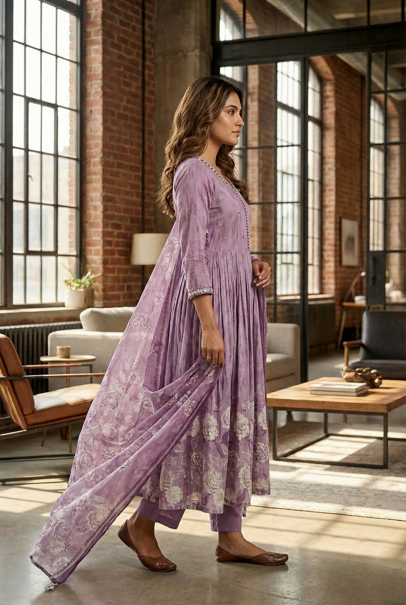 Elevate your ethnic wardrobe with this exquisite three-piece ensemble crafted from luxurious lavender rayon. Each piece showcases intricate hand embroidery, a testament to traditional artisanal craftsmanship. The soft, breathable rayon fabric ensures comfort throughout the day, while the delicate embroidered detailing adds sophistication and timeless appeal. Perfect for festive occasions, celebrations, or refined everyday wear, this coordinated set offers versatility without compromising on elegance. The lavender hue complements a wide range of skin tones, making it an essential addition to any discerning wardrobe.