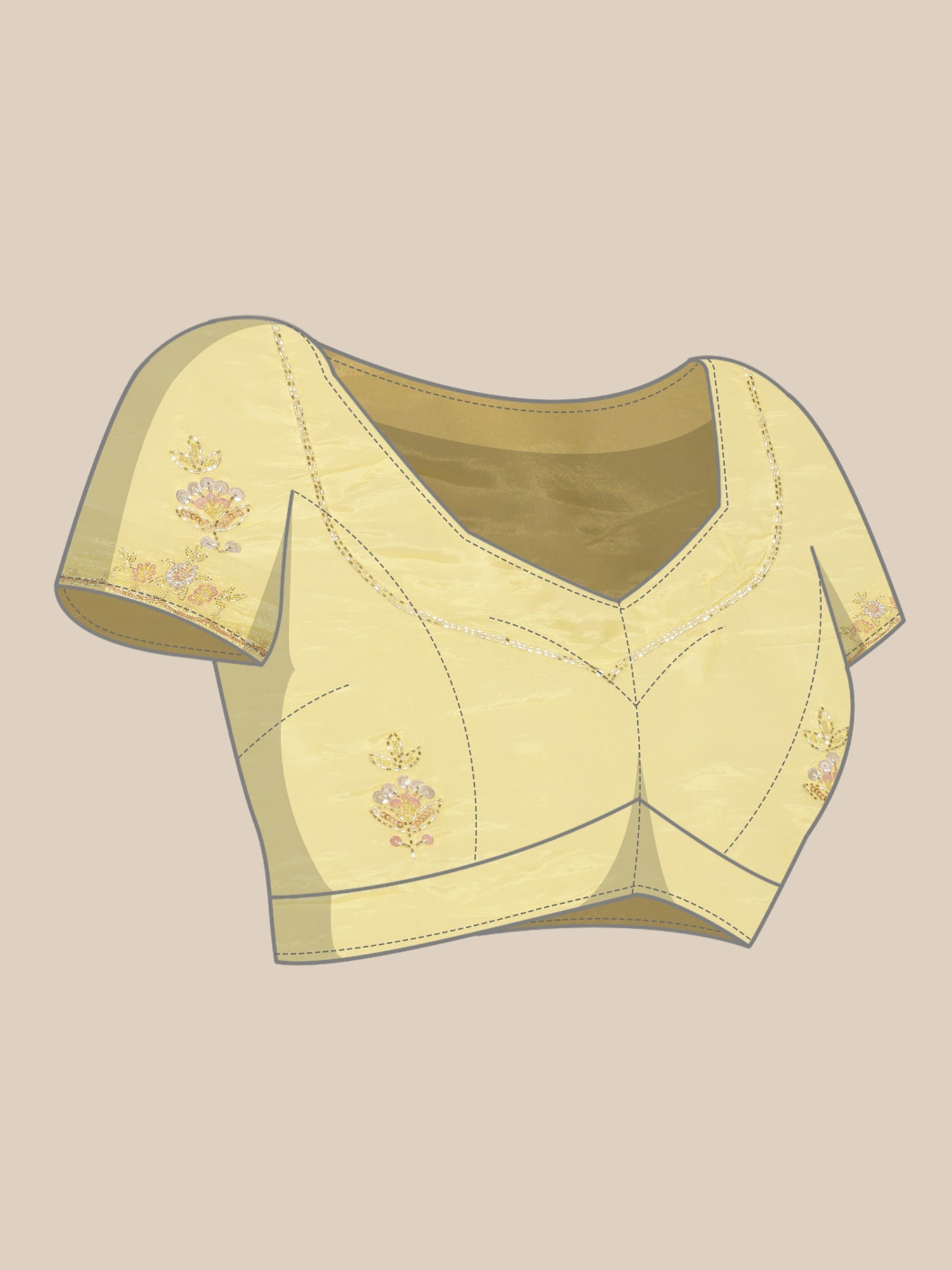 Please note: The blouse shown in the image is for styling purposes only and is not the actual blouse that comes with the saree.