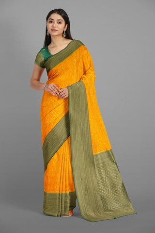 LIGHT GREEN and GREEN BUTTIS CHIFFON Saree with BANARASI FANCY