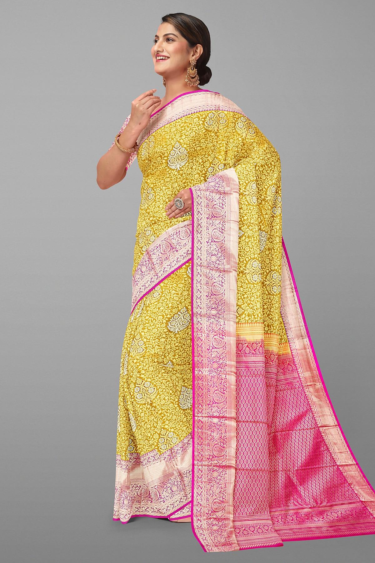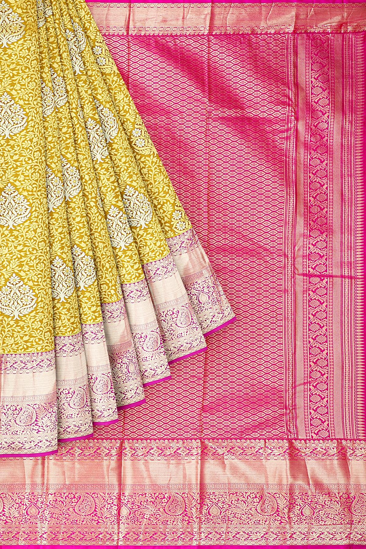 LIGHT GREEN and PINK FLORAL JAAL SILK BLEND Saree with SEMI PATTU