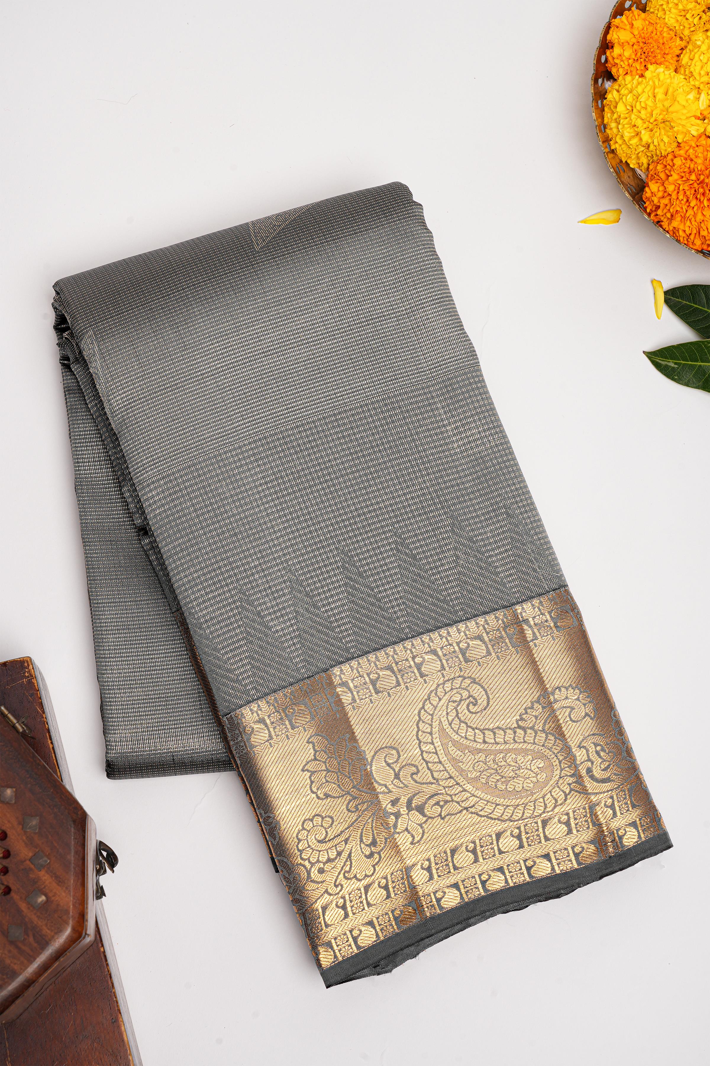 LIGHT GREY and GOLD BUTTIS SILK BLEND Saree with SEMI PATTU