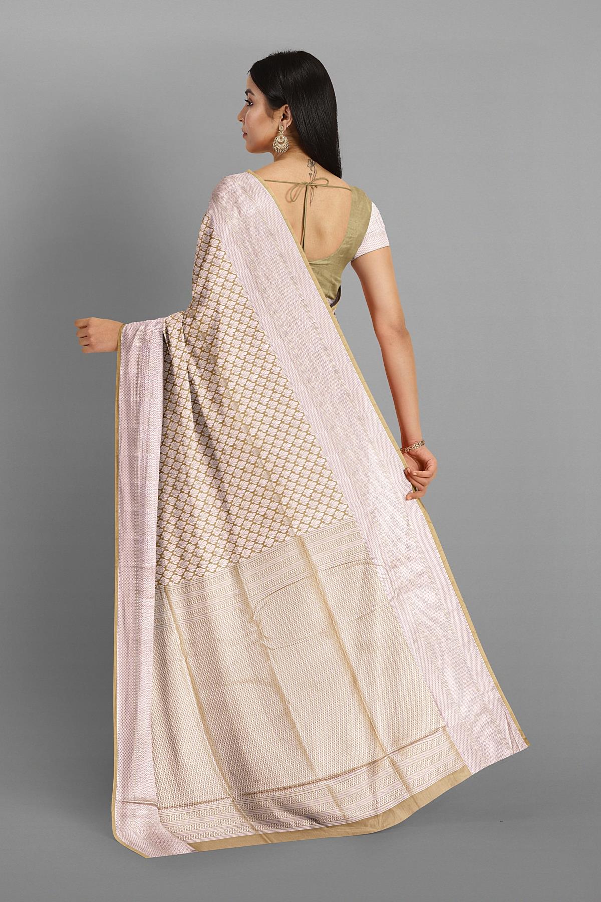 Latest LIGHT GREY FLORALS SILK BLEND Saree with SELF ZARI border. This saree comes with PLAIN WITH BORDER SILK BLEND blouse.